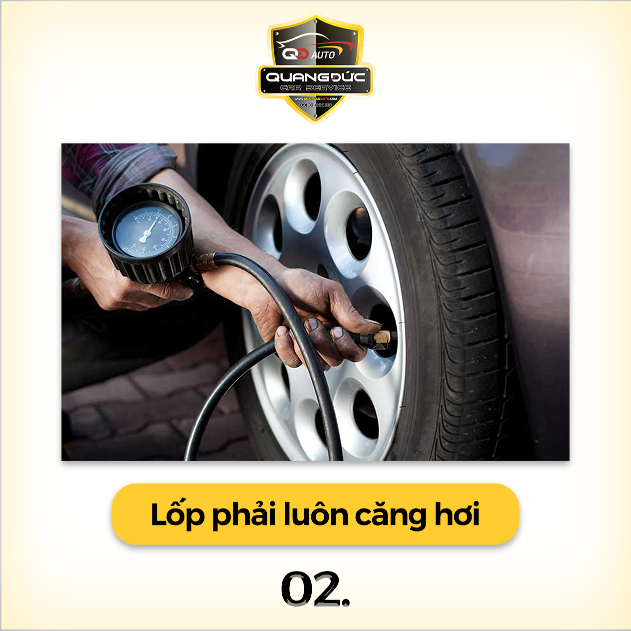 Giữ cho lốp xe trong tình trạng đủ hơi là một trong những cách tốt nhất để tiết kiệm nhiên liệu, đồng thời đó là cách để đảm bảo an toàn tính mạng cho người sử dụng xe bởi lốp xe non. Bơm cho lốp xe đạt đến ngưỡng tối đa theo đề nghị của nhà sản xuất. Các lái xe nên kiểm tra ít nhất một tháng một lần.