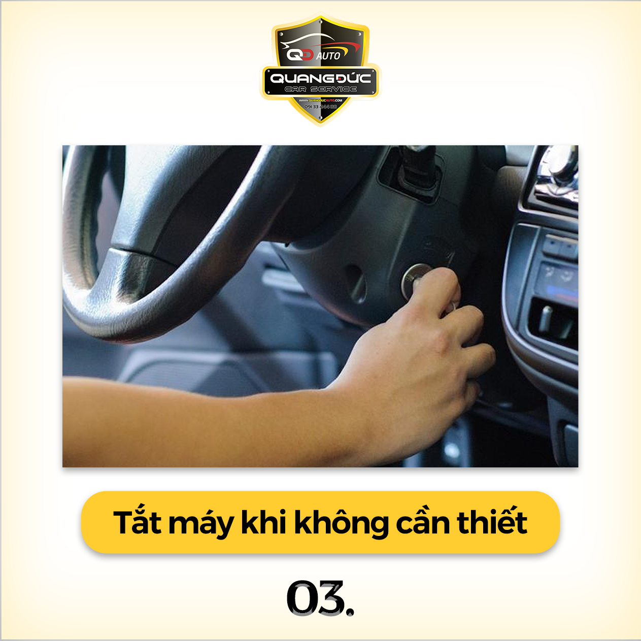 Khi chiếc xe dừng lại hoặc tạm ngừng hoạt động thì nên tắt động cơ để nhằm giảm hao phí nhiên liệu vô ích. Tránh việc hâm nóng động cơ quá lâu và tránh việc để động cơ chạy một cách nhàn rỗi. Nhiều người có thói quen dừng đèn đỏ vẫn để máy nổ, tuy nhiên nếu đèn đỏ kéo dài trên 30 giây bạn nên tắt máy để không bị lãng phí nhiên liệu.