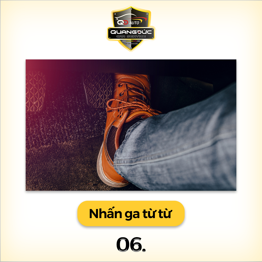 Do đó, cố gắng nhấn ga từ từ khi xuất phát và trước khi dừng xe, cần duy trì khoảng cách an toàn giữa các phương tiện và phán đoán điều kiện giao thông để kịp tăng ga và nhấn phanh đều đặn.