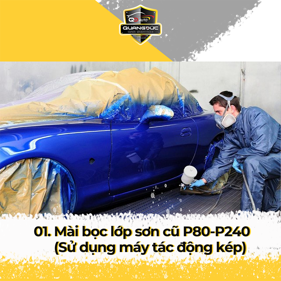 Mài bọc lớp sơn cũ P80-P240 (Sử dụng máy tác động kép)