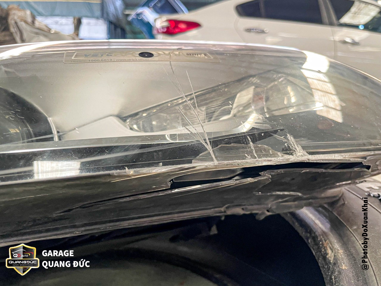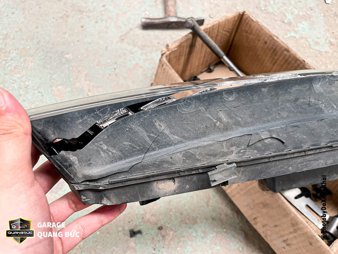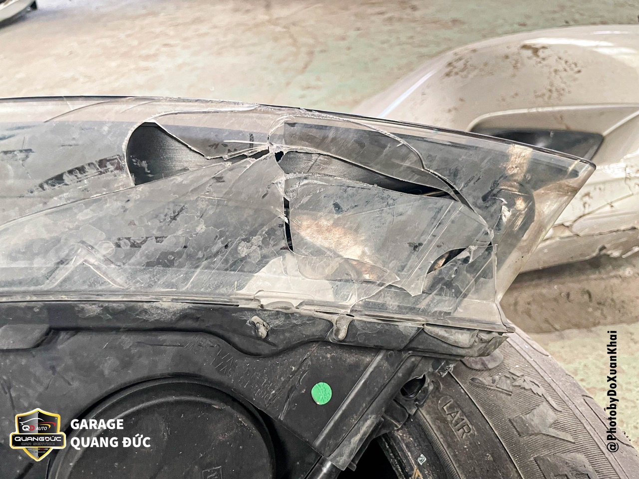 Phần đầu bị vỡ đèn chiếu sáng bên phụ được thay thế mặt đèn mới là hàng xịn loại đẹp để tiết kiệm chi phí.