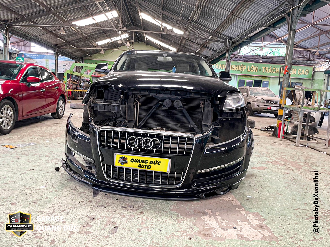 Việc phục hồi xe sau tai nạn là một quá trình quan trọng để đảm bảo an toàn và hiệu suất của phương tiện. Trong trường hợp của chiếc xe AUDI Q7 thuộc đời 2013, sau khi gặp tai nạn và phần đầu bị vỡ đèn, móp xước Badershock (BDS), lip cài BDS. Vì vậy, để tân trang lại diện mạo sang trọng vốn có, chủ xe đã lựa chọn Garage Quang Đức Auto để tiến hành phục hồi, sửa chữa.