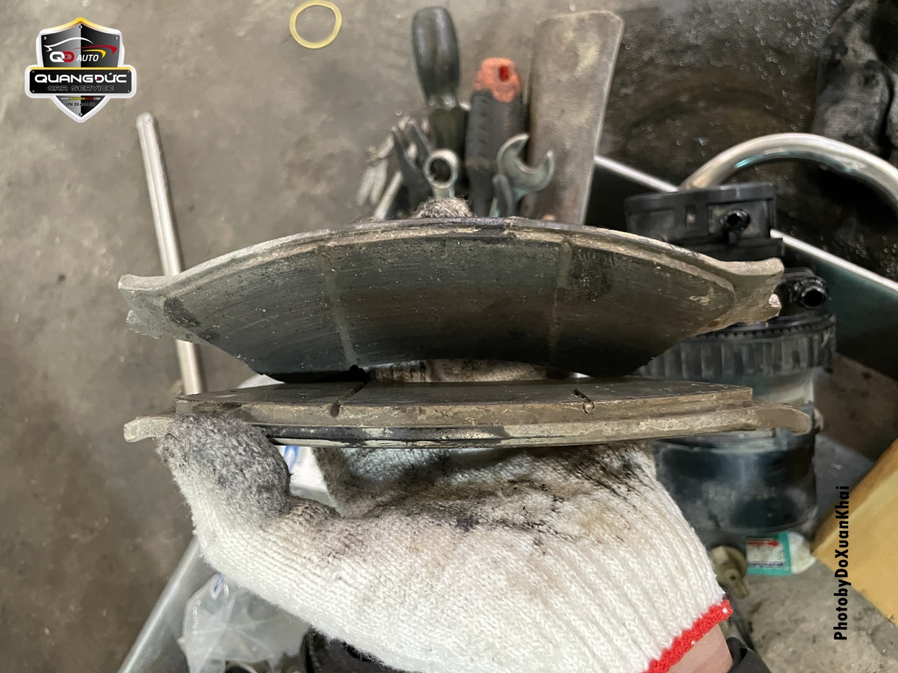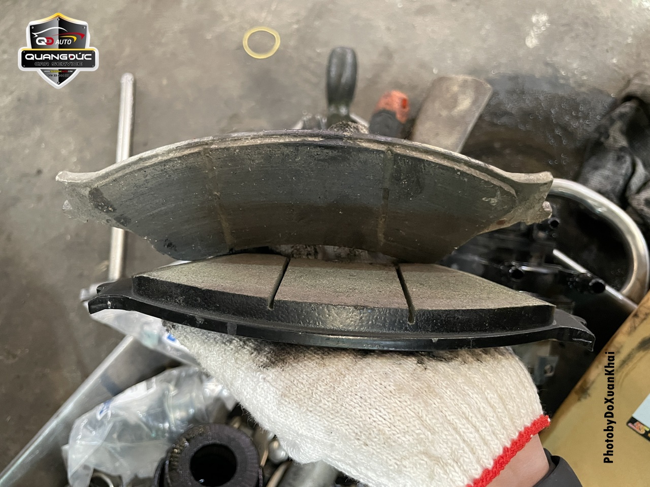 Vệ sinh má, đĩa phanh: Loại bỏ các bụi bẩn, tăng hiệu quả mát giữa má phanh và đĩa phanh, Tuy nhiên trên chiếc xe này má phanh đã mòn hết nên cần phải thay thế mới hàng xịn chuẩn mã theo xe.