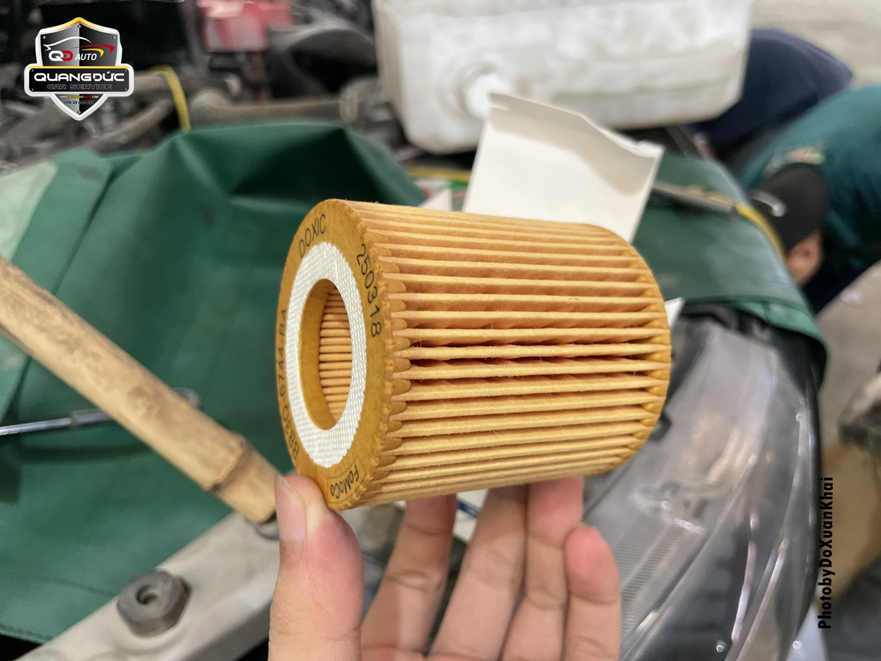 Chiếc xe được kiểm tra và thay dầu động cơ, kèm theo đó là lọc dầu chuẩn theo xe. Đối với lọc dầu động cơ, cứ chạy 10.000km chúng ta nên thay thế
