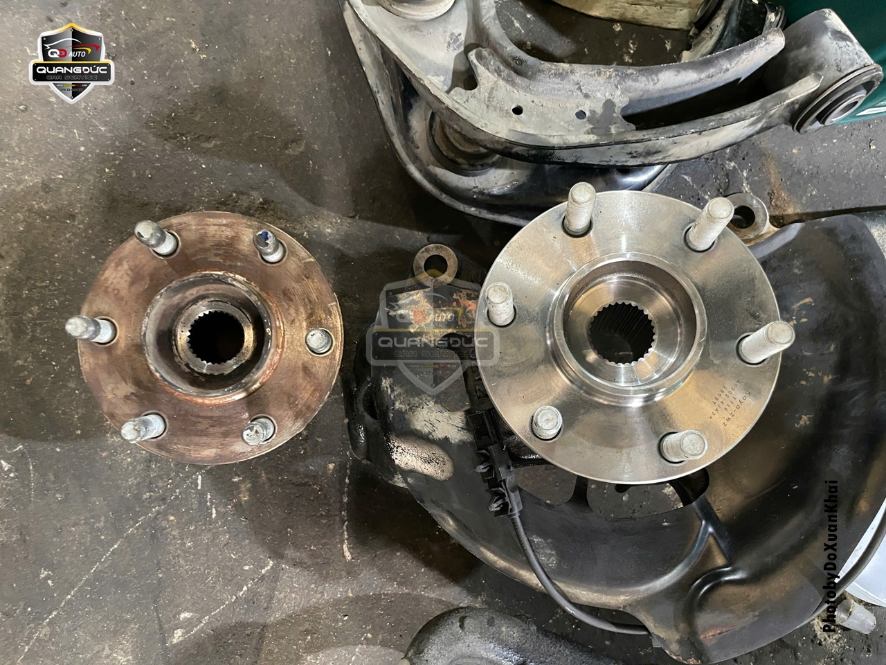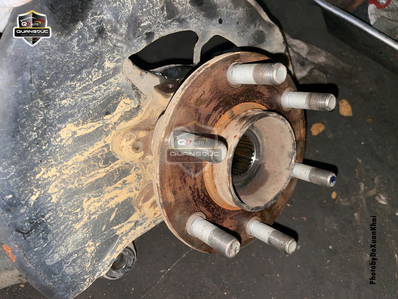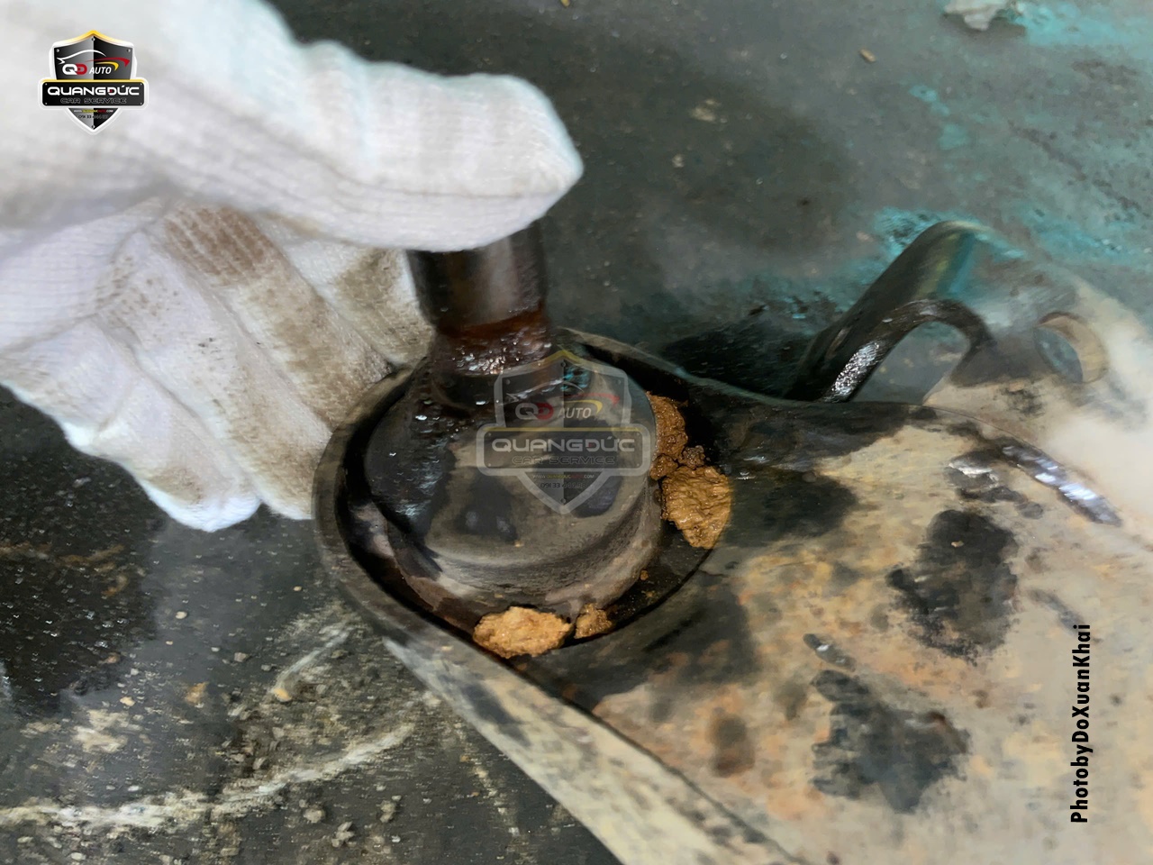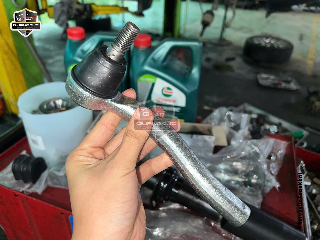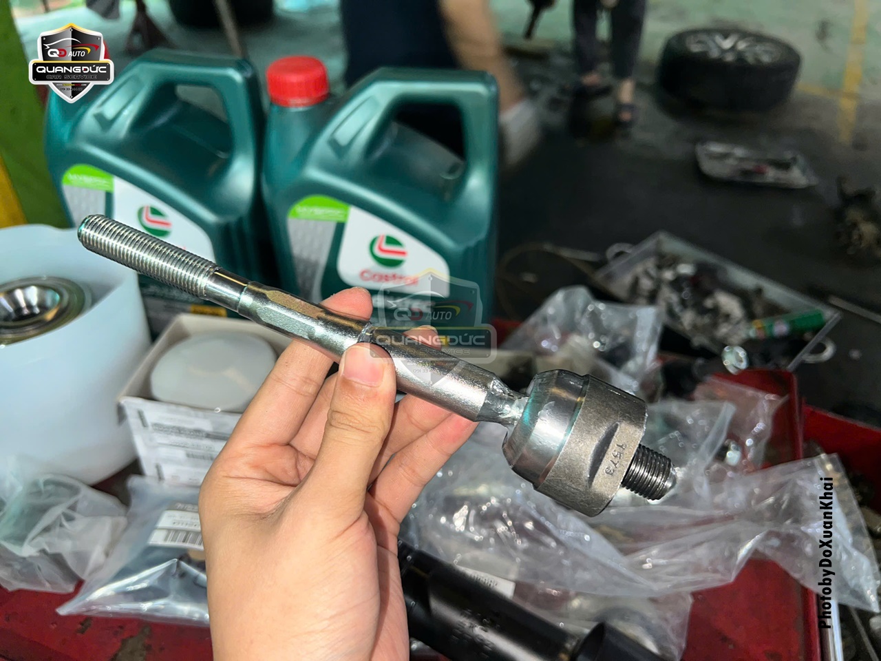 Sau khi kiểm tra, đội ngũ kỹ thuật của Quang Đức Auto đã nhận thấy Cao su càng A dưới ( To, nhỏ) bị nứt, mòn do oxi hóa, Rotuyn cân bằng bị bụi bẩn bám vào sâu bên trong gây bó kẹt do đó cần thay thế các chi tiết này.