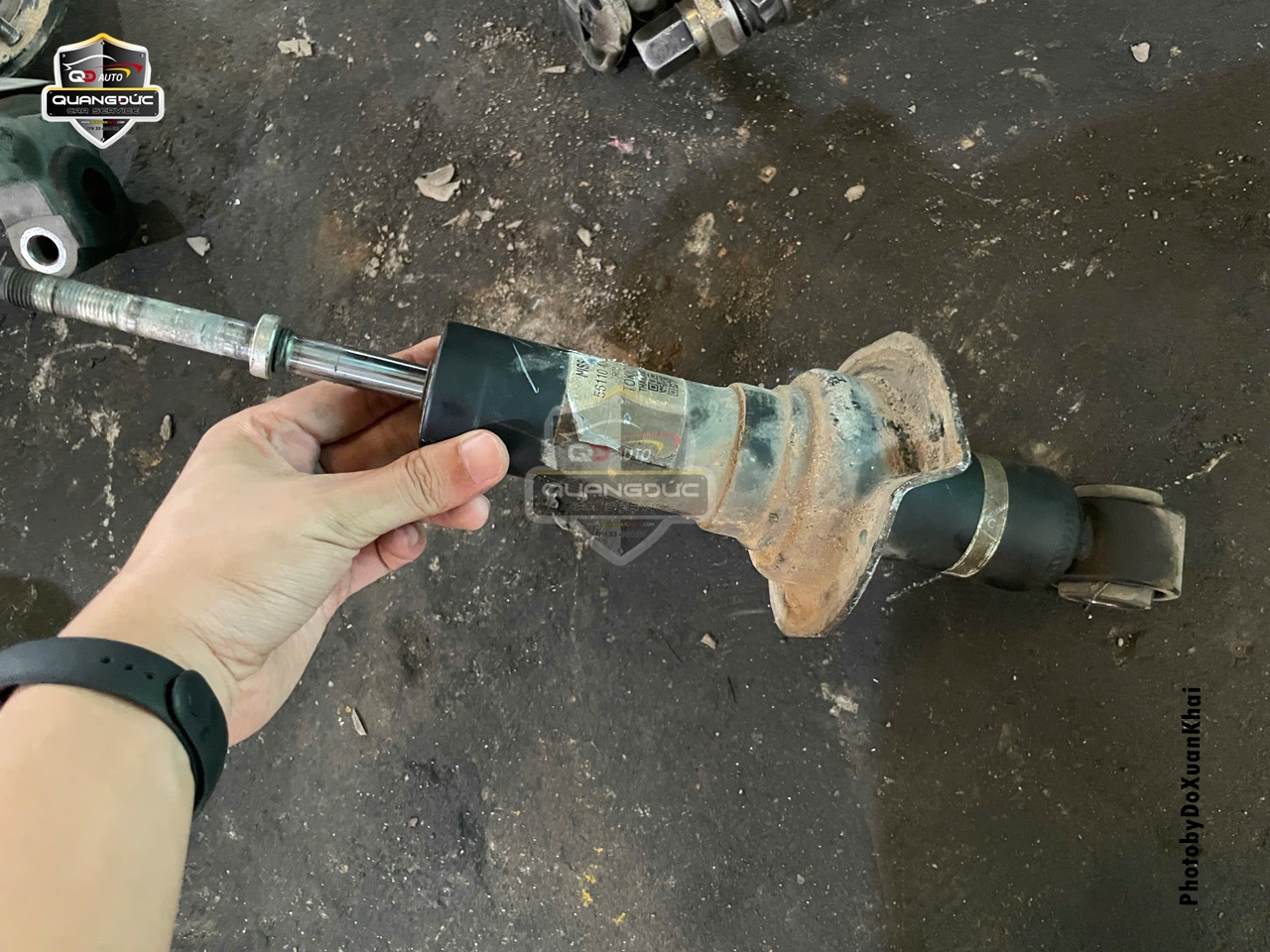 Sau 10 năm sử dụng đi được 27 vạn, chiếc NISSAN NAVARA đã có biểu hiện kém đi ở hệ thống giảm xóc trước khiến xe bị nhún mạnh về phía trước khi phanh, xe bị lắc lư, lốp mòn không đều. Trên lý thuyết, con số lý tưởng để người lái xe tiến hành kiểm tra, thay thế bộ giảm xóc ô tô là từ 80.000 - 140.000km tùy vào loại xe và điều kiện vận hành thường xuyên. Với các hiện tượng trên, đội ngũ kỹ thuật đã tiến hành thay thế Giảm xóc trước, tăm bông giảm xóc, bát bèo cả hai bên trái phải.
