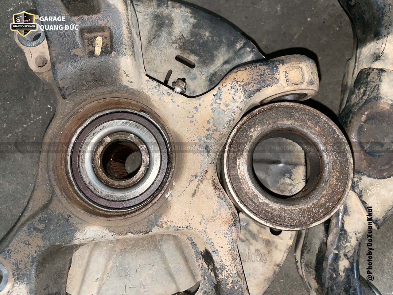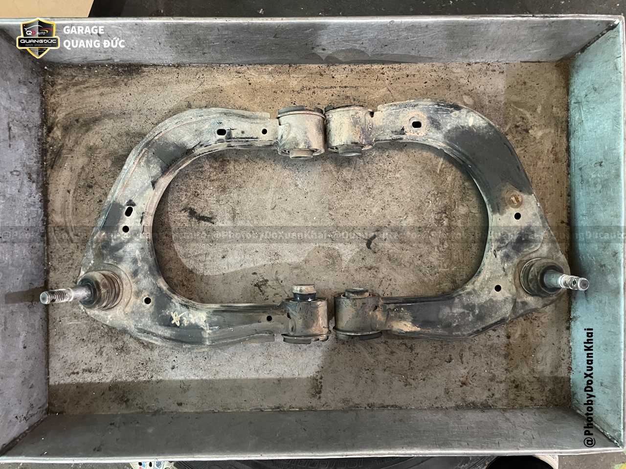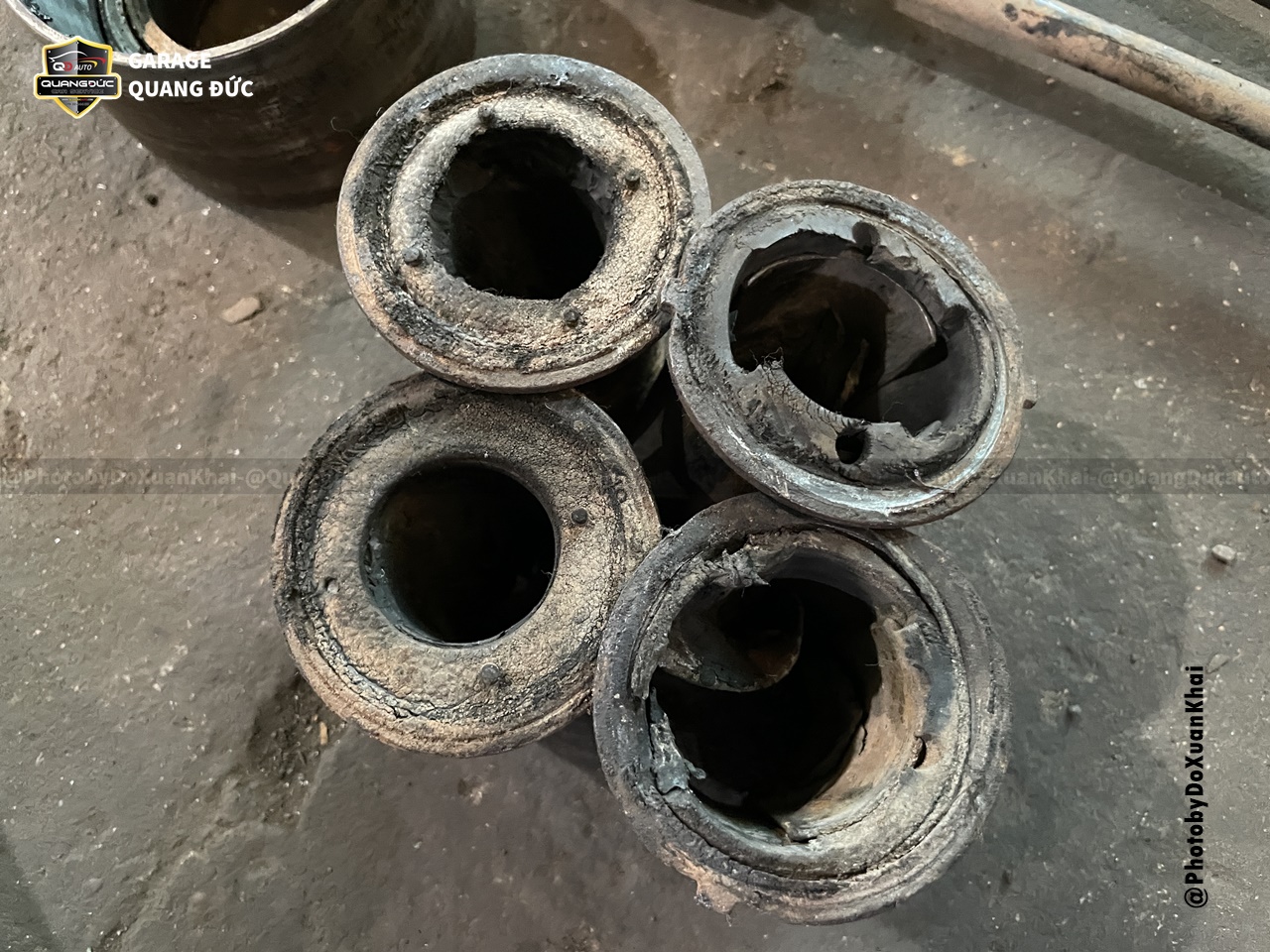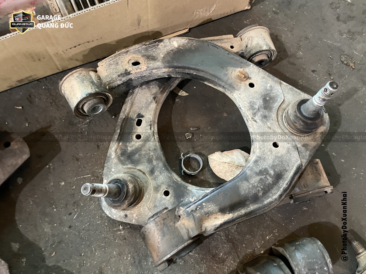 Sau khi kiểm tra, đội ngũ kỹ thuật của Quang Đức Auto đã nhận thấy Cao su càng A dưới ( To, nhỏ) bị nứt, mòn do oxi hóa, Rotuyn cân bằng bị bụi bẩn bám vào sâu bên trong gây bó kẹt do đó cần thay thế các chi tiết này.