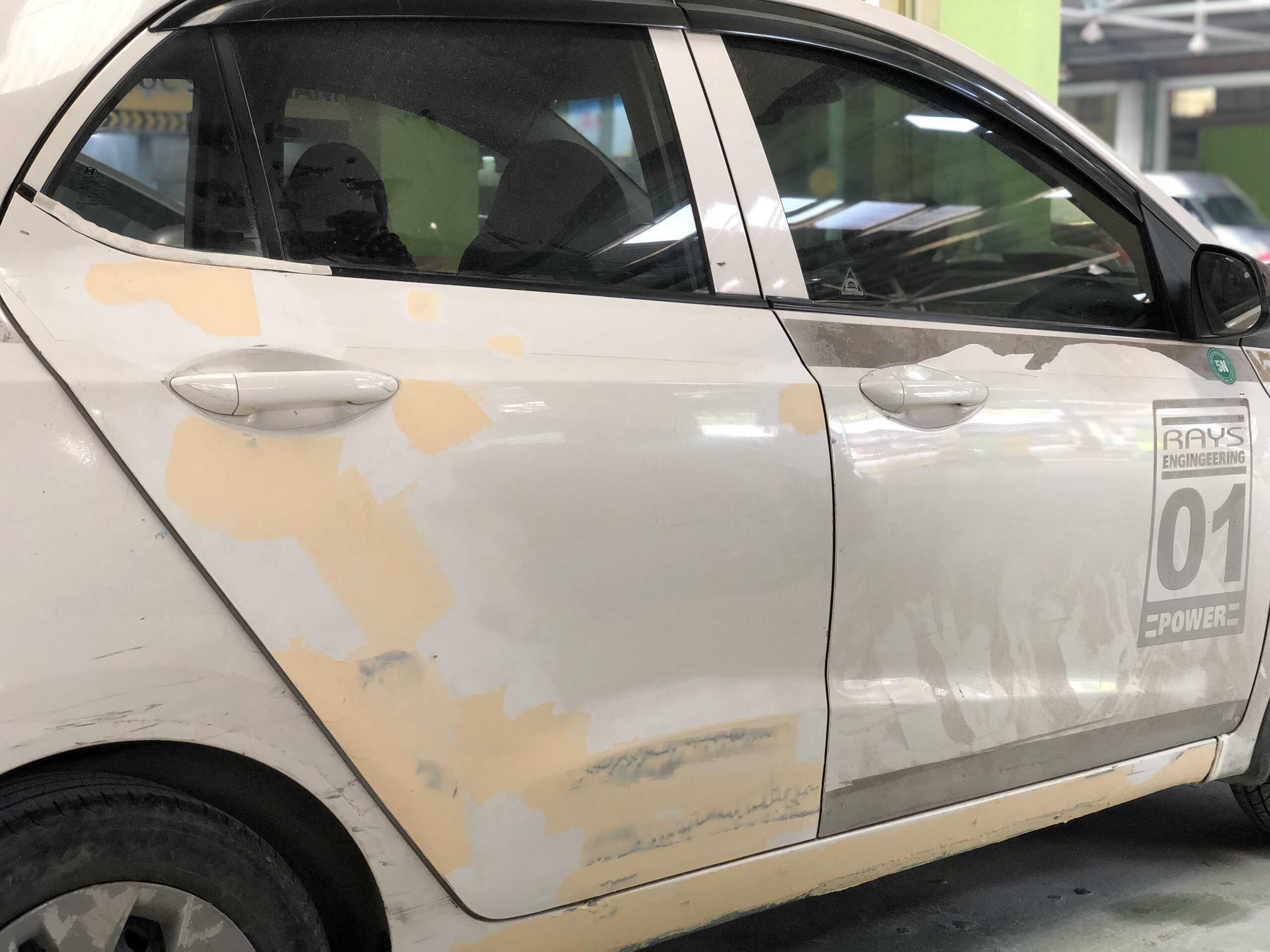 Sử dụng bả matis chuyên dụng bả toàn bộ phần vỏ xe có tác dụng lấp đầy các bề mặt bị trầy xước và lồi lõm vào đúng khuôn chuẩn của vỏ xe. Bước này cần tiến hành cẩn thận để tạo dáng khuôn xe hoàn hảo hơn.