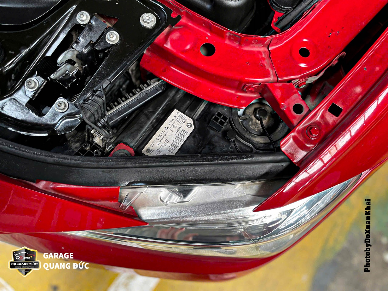 Sau khi thay thế sửa chữa, chủ xe cũng đã sử dụng dịch vụ rửa khoang máy tại Quang Đức Auto