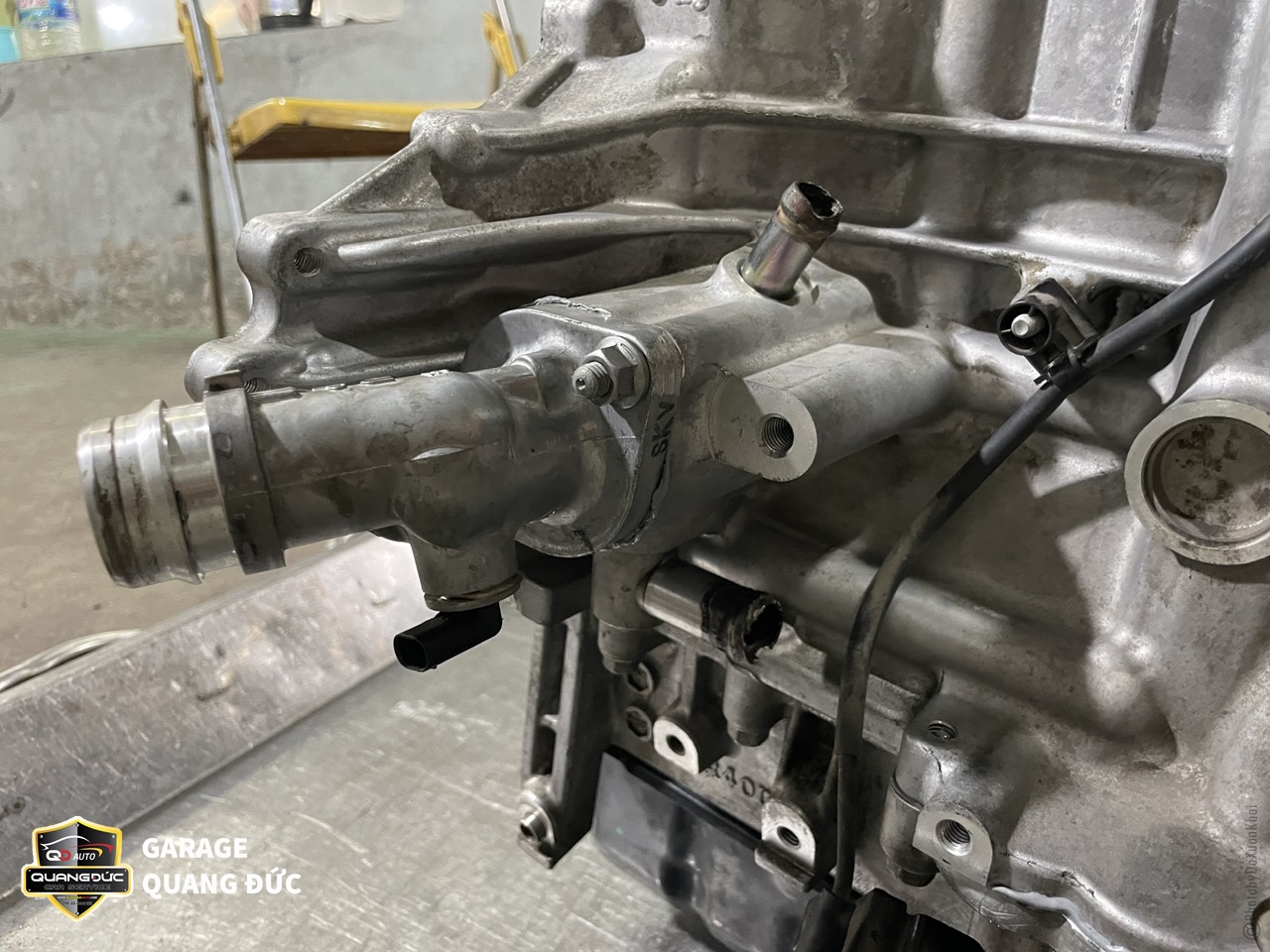 Sau khi chẩn đoán và bắt bệnh, kỹ thuật viên Quang Đức Auto đã tiến hành hạ máy chiếc HYUNDAI KONA, tháo động cơ để vệ sinh các chi tiết bẩn và thay thế những bộ phận hư hỏng do vấn đề động cơ quá nhiệt gây ra.