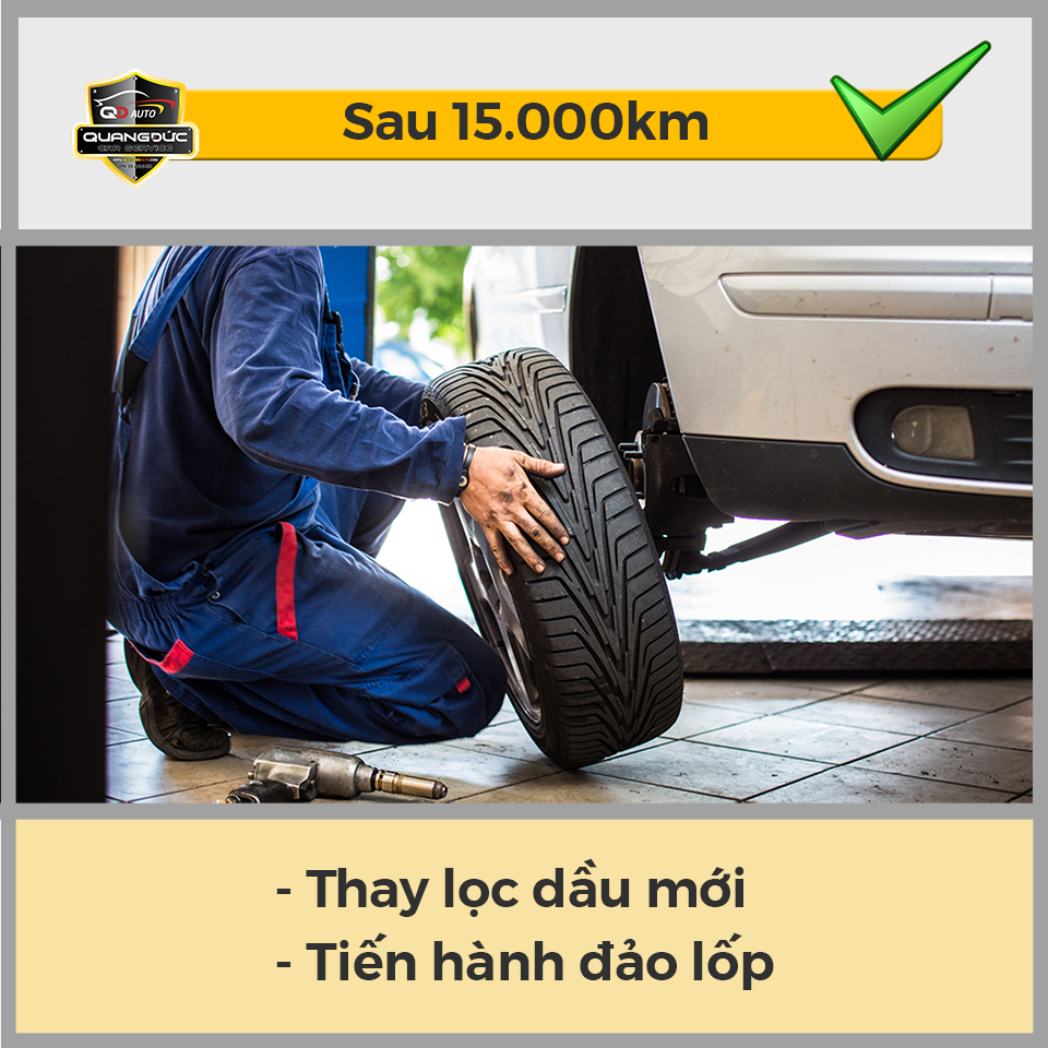 Lọc dầu có nhiệm vụ giữ lại các cặn bẩn, giúp động cơ được bôi trơn với dầu sạch và luôn hoạt động tốt. Các chuyên gia khuyên tốt nhất là nên thay lọc dầu cùng lúc với khi thay dầu, tức sau mỗi 10.000 km. Ngoài ra, ở mốc thời gian này bạn cũng nên đảo lốp nếu cần thiết, và sau đó tiếp tục đảo lốp sau mỗi 10.000 km.
