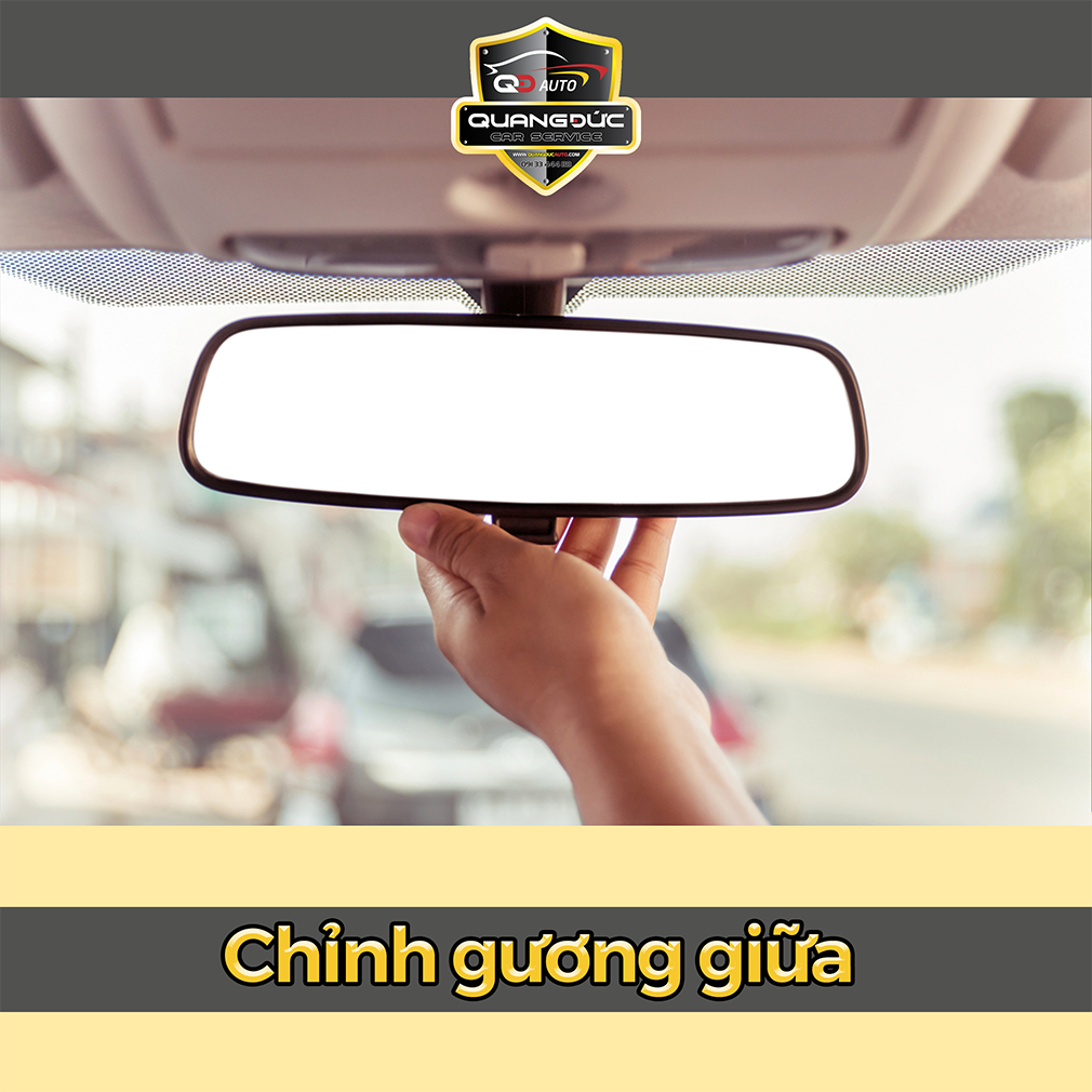 Điều chỉnh gương chiếu hậu vị trí giữa sao cho tầm nhìn có thể bao quát hết về phía sau, khi chúng ta xoay đầu ở mọi vị trí nhưng vẫn đảm bảo được góc nhìn về sau phải rộng ở mức an toàn.