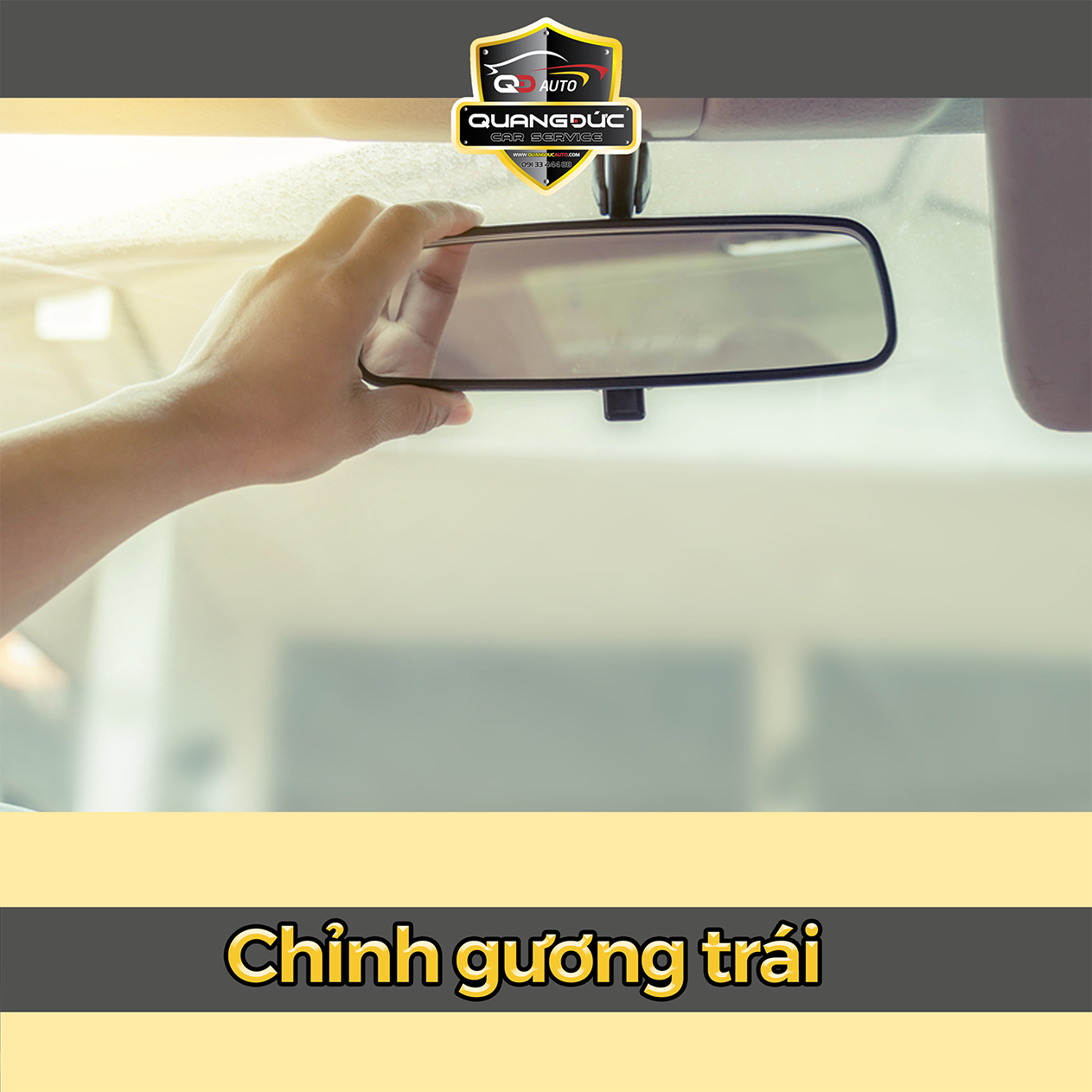 Chỉnh gương chiếu hậu bên trái sao cho có thể bao quát khoảng ¾ về phía ngoài và ¼ vào thân xe có thể nhìn thấy toàn thân xe và đuôi xe, và điều chỉnh độ cao thấp của gương sao cho có thể nhìn thấy được một ít vị trí bánh sau nhằm đảm bảo tầm nhìn khi lùi xe.
