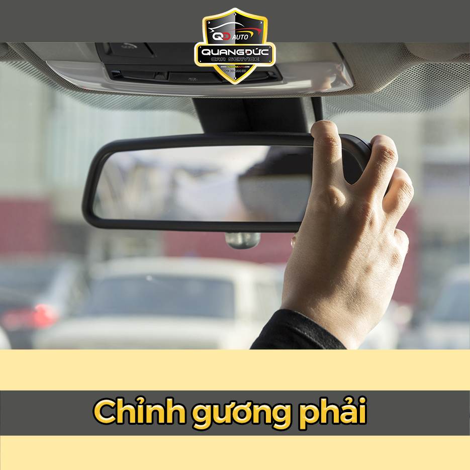 Điều chỉnh gương chiếu hậu phải tương tự, sao cho có thể bao quát khoảng ¾ về phía ngoài bên phải và ¼ vào thân xe, bánh xe sau.