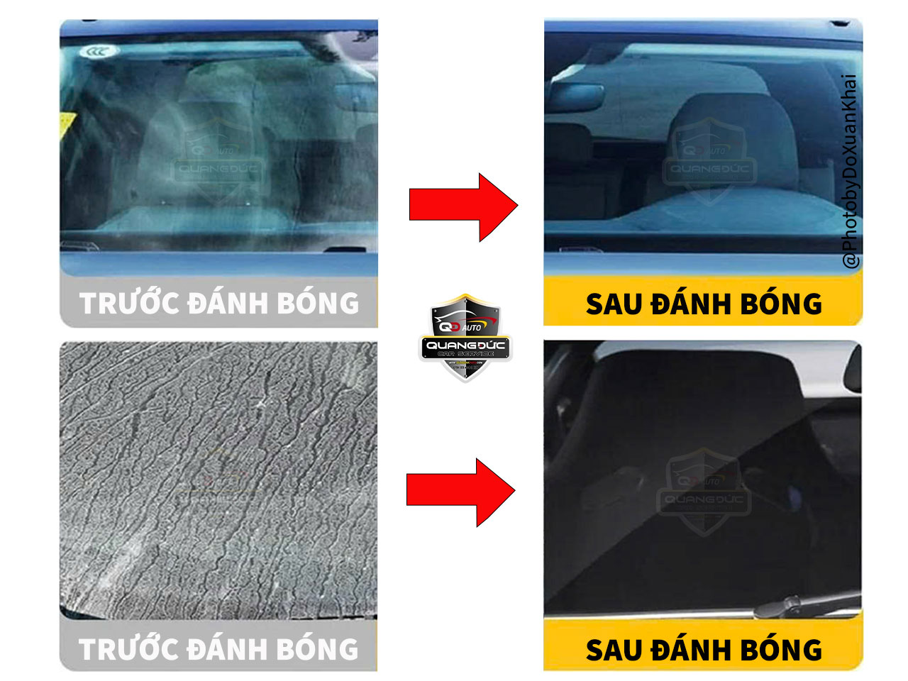 NHỮNG KHÁC BIỆT RÕ RỆT SAU KHI ĐÁNH BÓNG KÍNH XE Ô TÔ TẠI QUANG ĐỨC AUTO