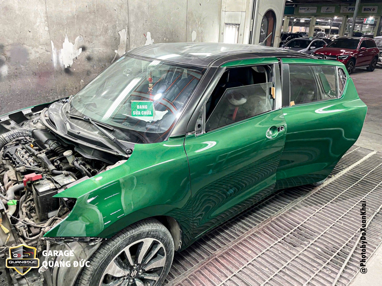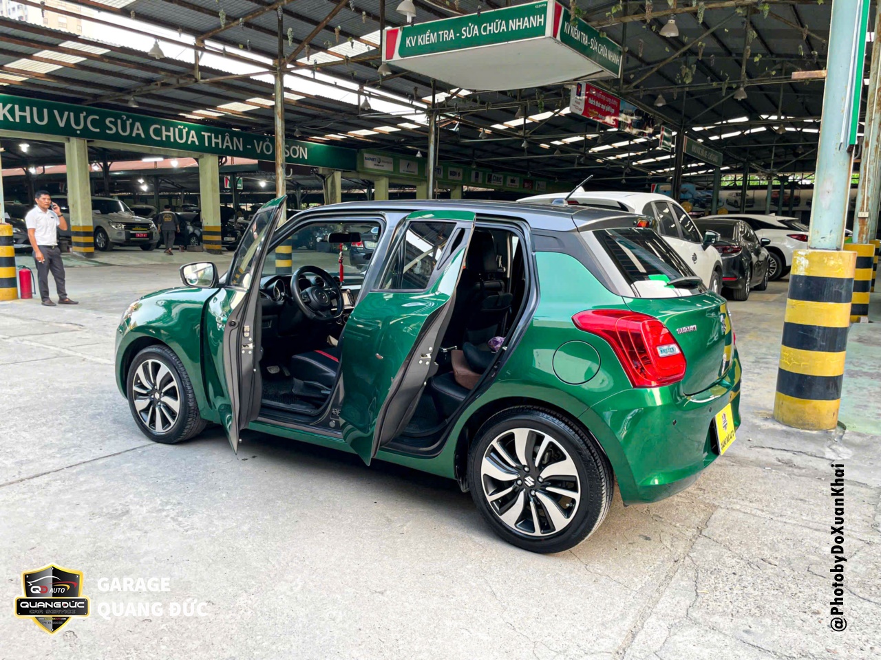 Đổi màu sơn ô tô SUZUKI SWIFT có thể mang lại nhiều lợi ích. Đầu tiên, nó giúp cải thiện vẻ ngoài của xe, làm cho nó trở nên mới mẻ và hấp dẫn hơn, phù hợp với sở thích và vận mệnh của chủ xe, đem lại nhiều may mắn, tài lộc. Thứ hai, việc này cũng giúp bảo vệ bề mặt xe khỏi các yếu tố môi trường như nắng, mưa, bụi bẩn và hóa chất đường phố. Chiếc SUZUKI SWIFT giờ đây được đổi từ màu xám sang màu xanh lá tuy nhiên chỉ đổi màu mặt ngoài, các vị trí như nóc & mặt bên trong của cánh cửa, bản lề capo, cốp… vẫn là màu đen theo phong cách cá nhân cửa chủ xe.