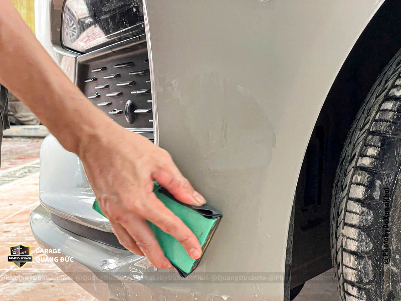Bước 2: Làm sạch và xử lý các vết lồi lõm trên bề mặt xe