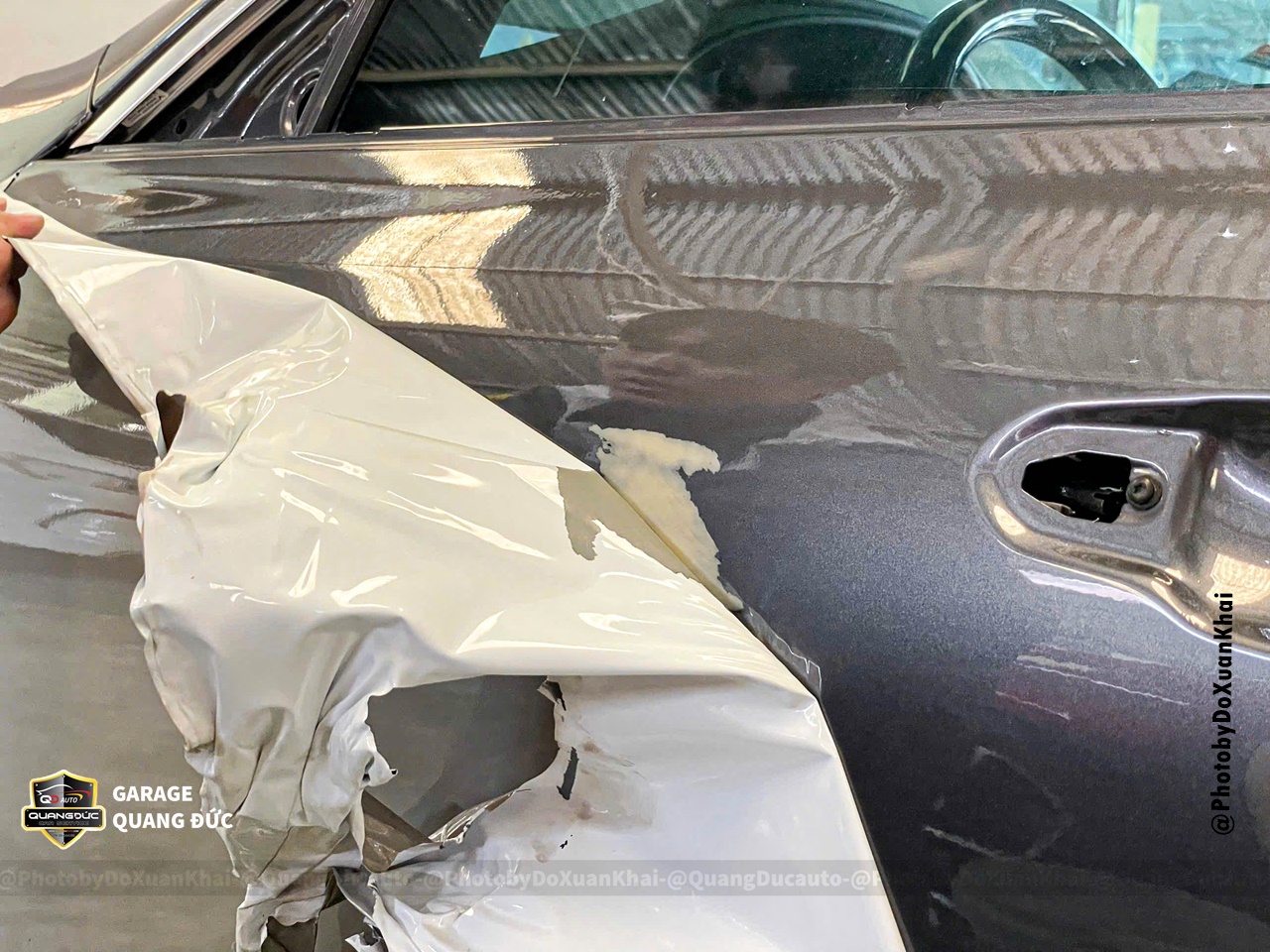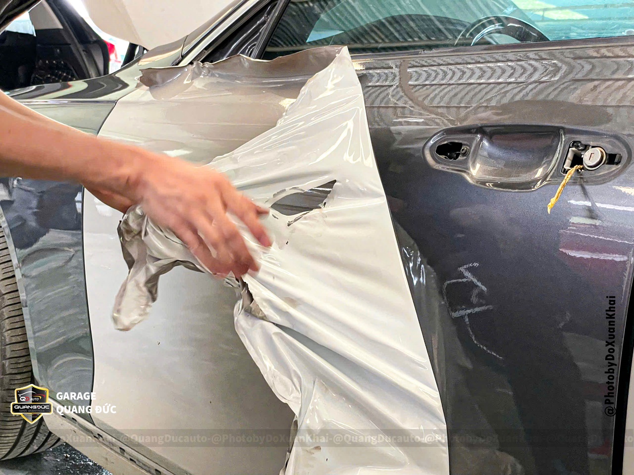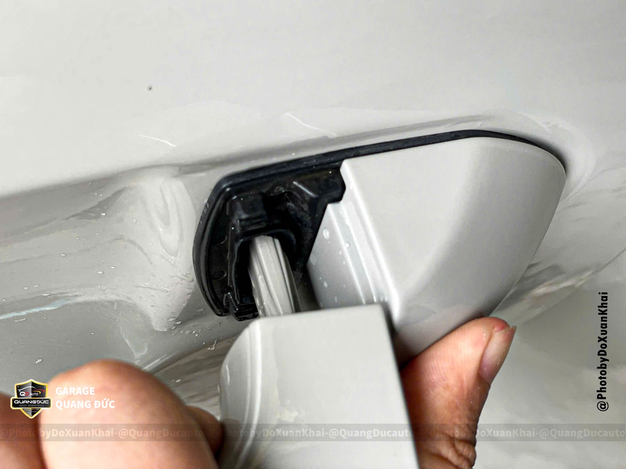 Bước 1: Tháo rời các chi tiết tay nắm cửa, chữ, logo, nẹp mạ, bóc decal cũ... phục vụ vệ sinh bề mặt thân vỏ
