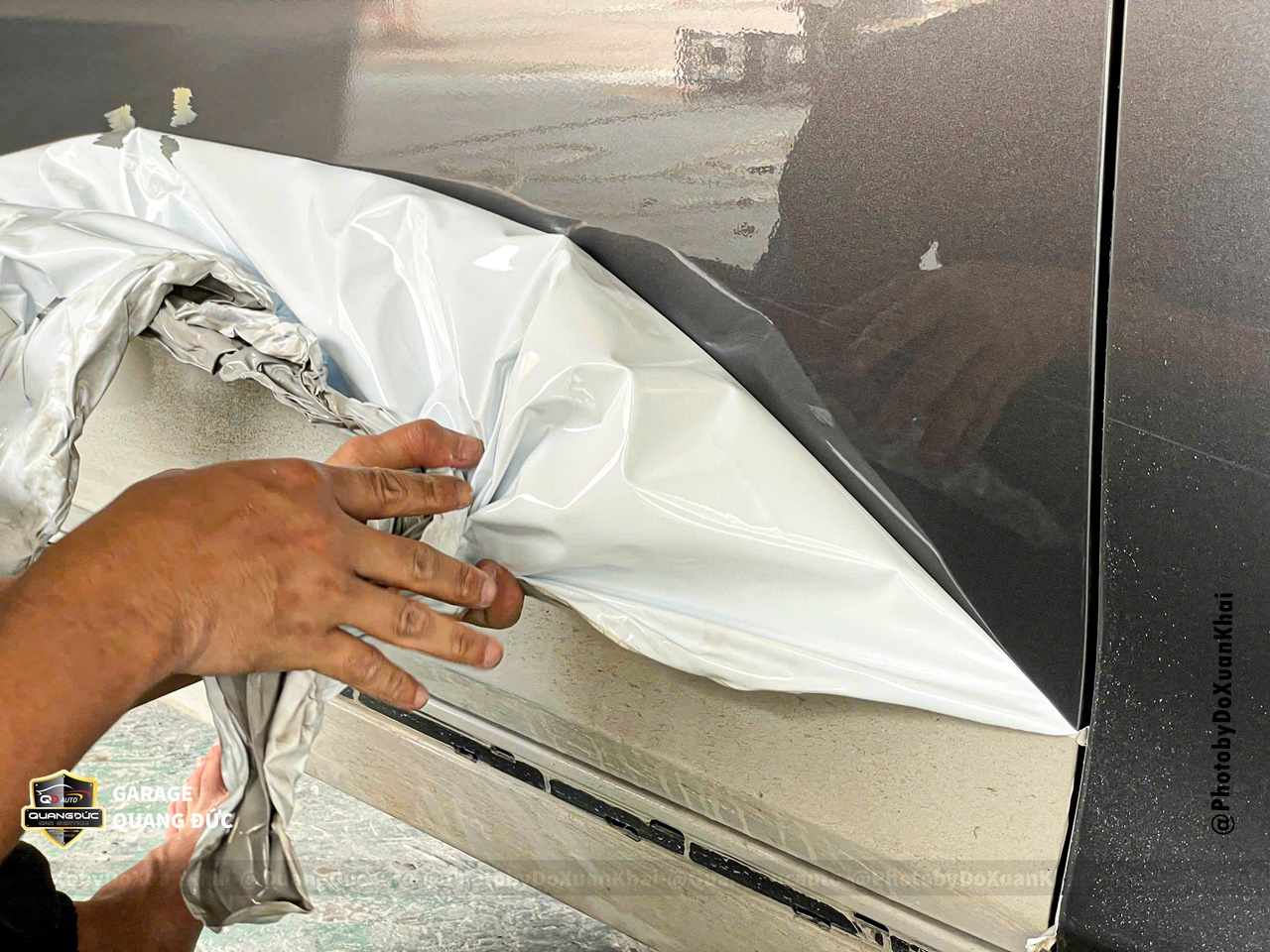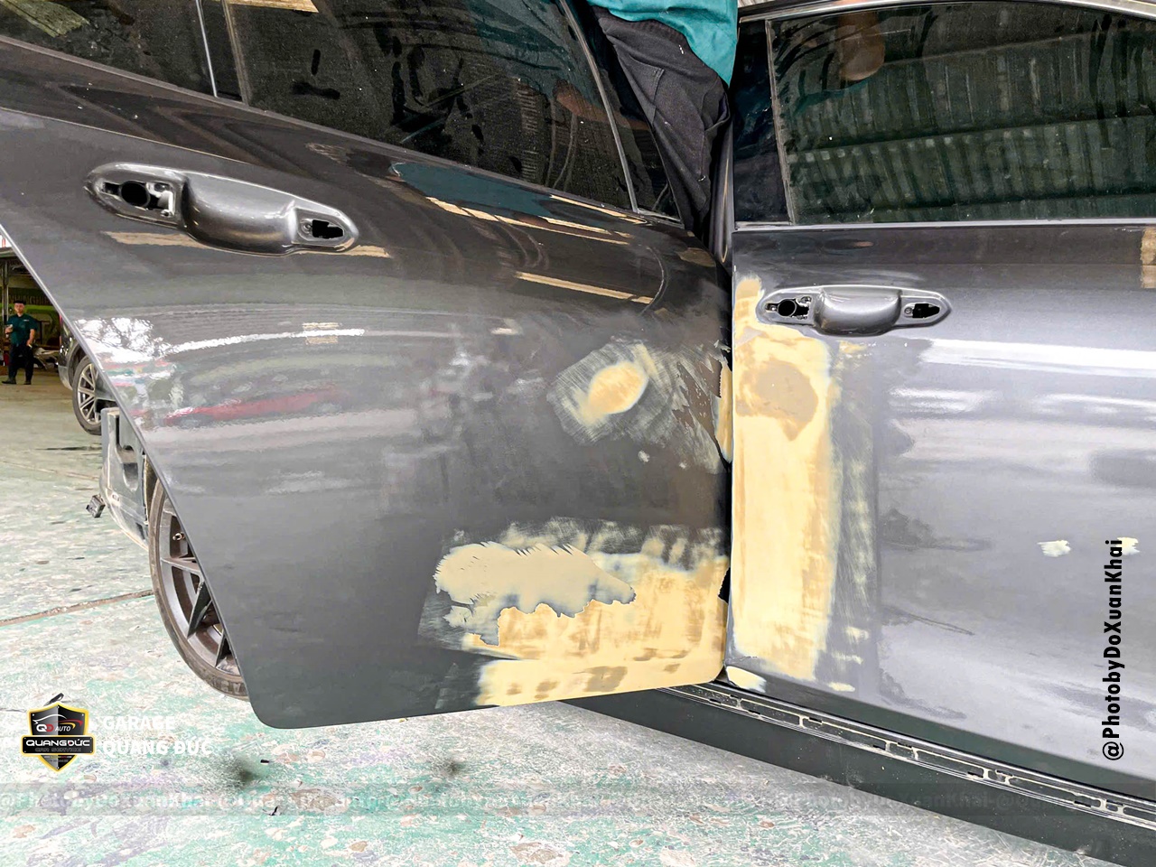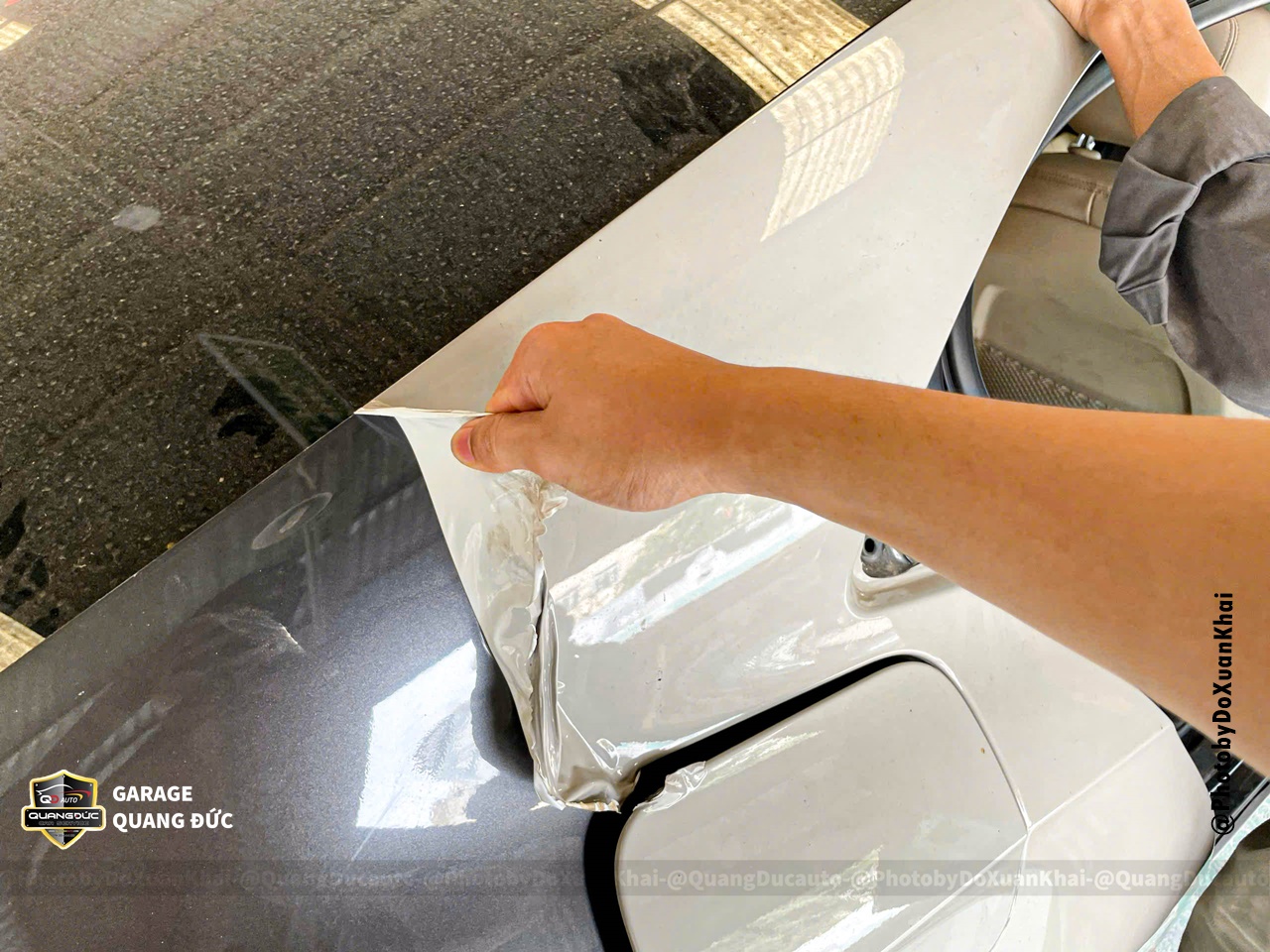 Bước 1: Tháo rời các chi tiết tay nắm cửa, chữ, logo, nẹp mạ, bóc decal cũ... phục vụ vệ sinh bề mặt thân vỏ