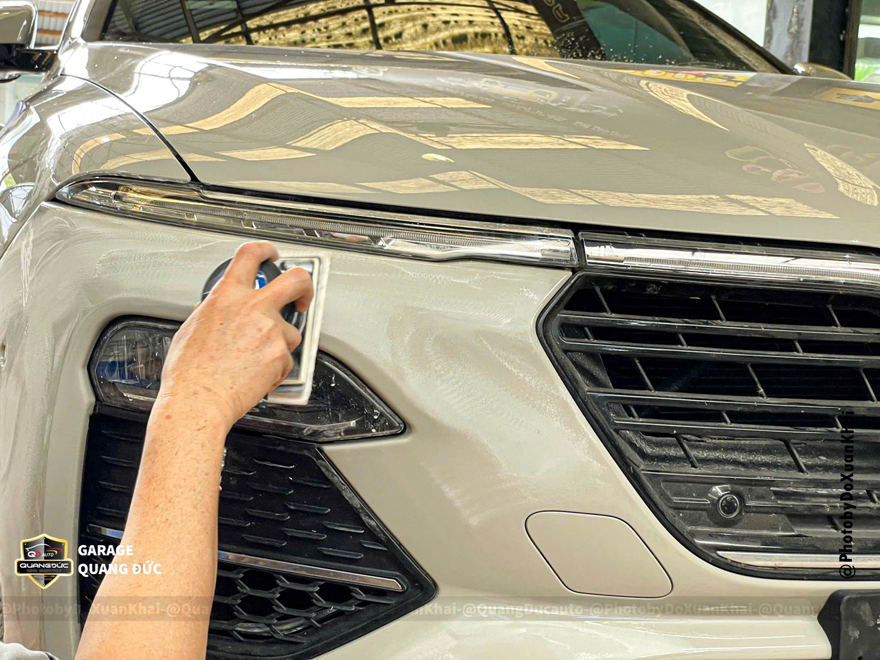 Bước 7: Đánh bòng chuyên sâu cả kính xe bằng si chính hãng 3M
