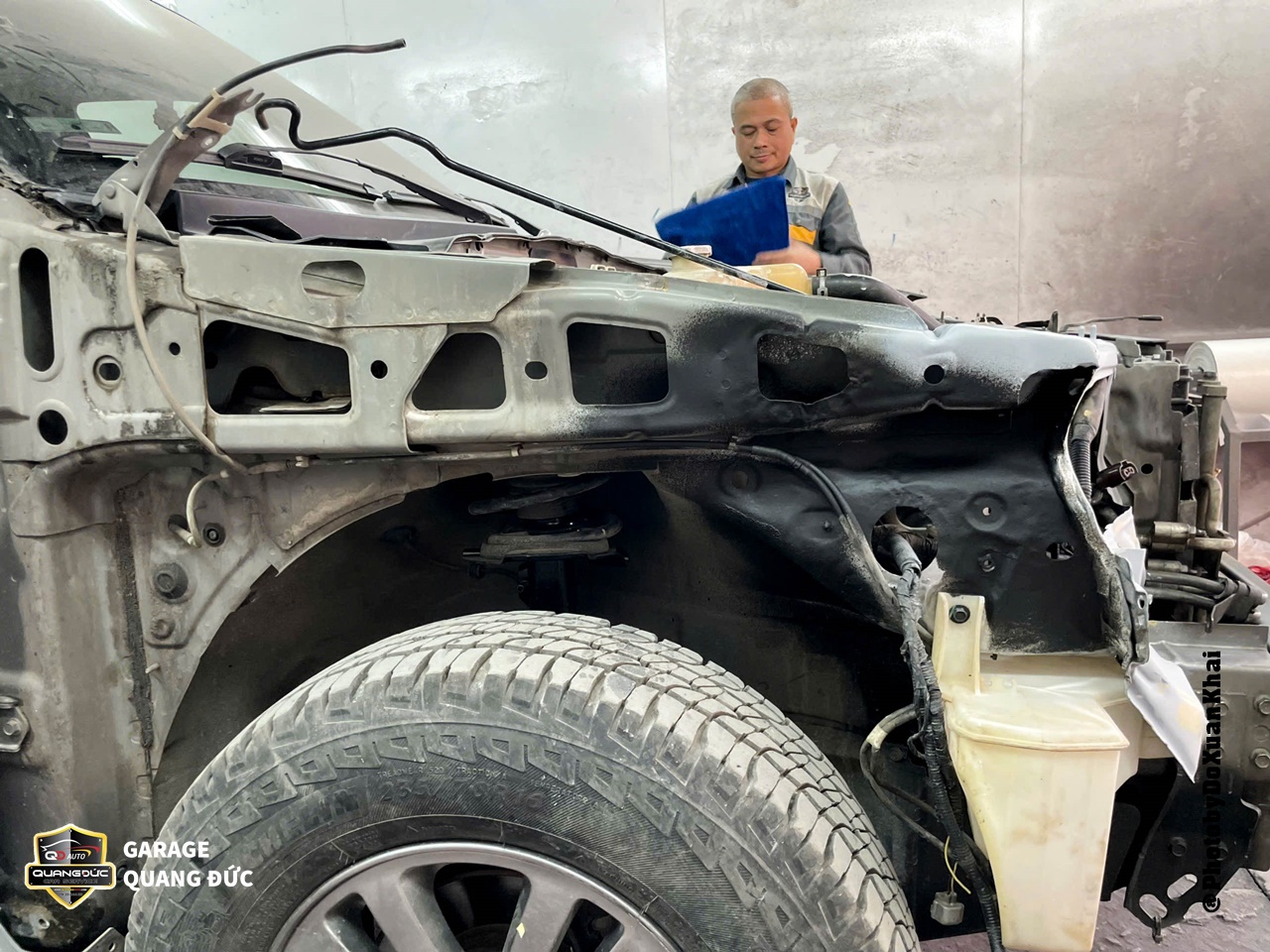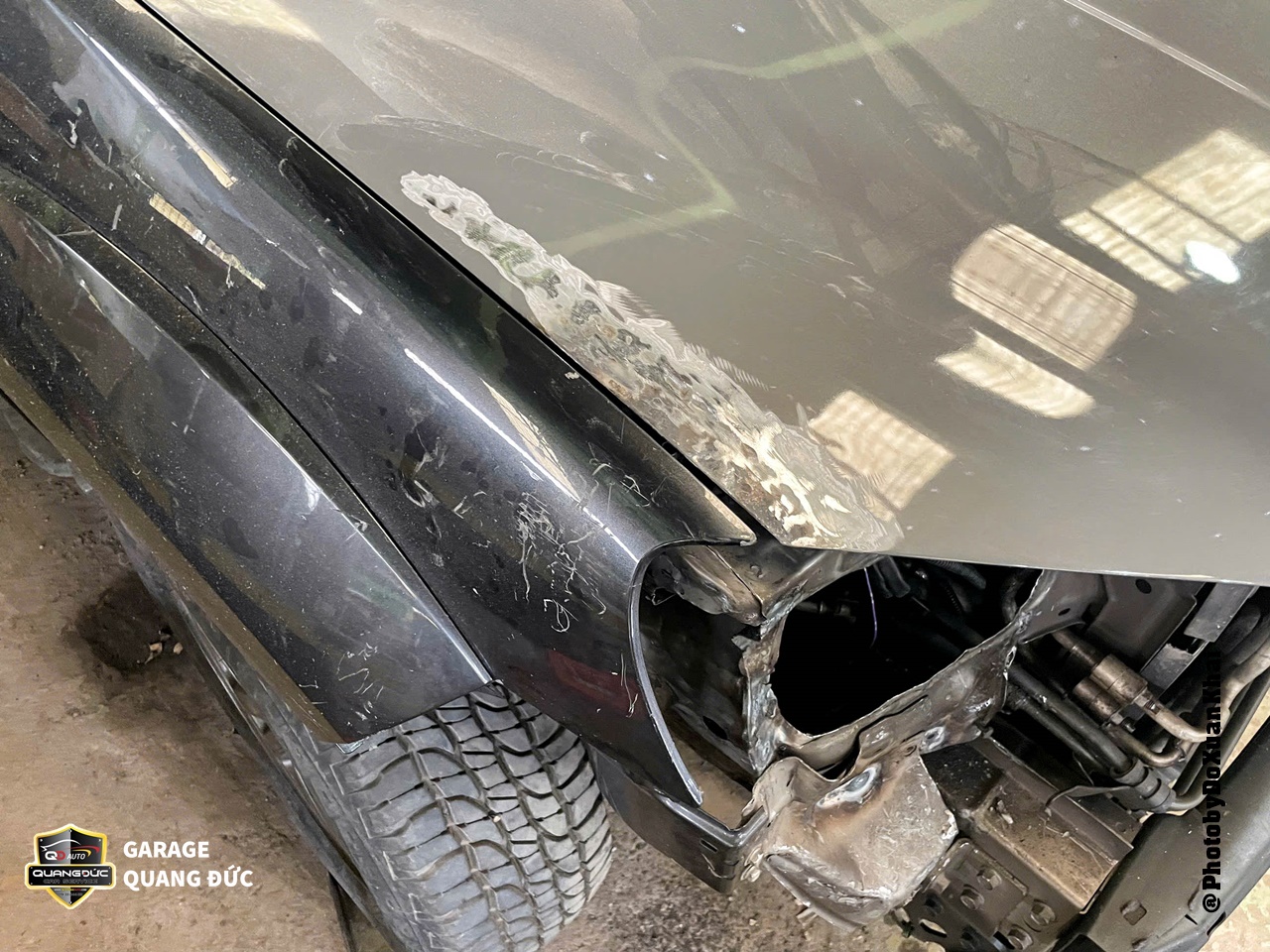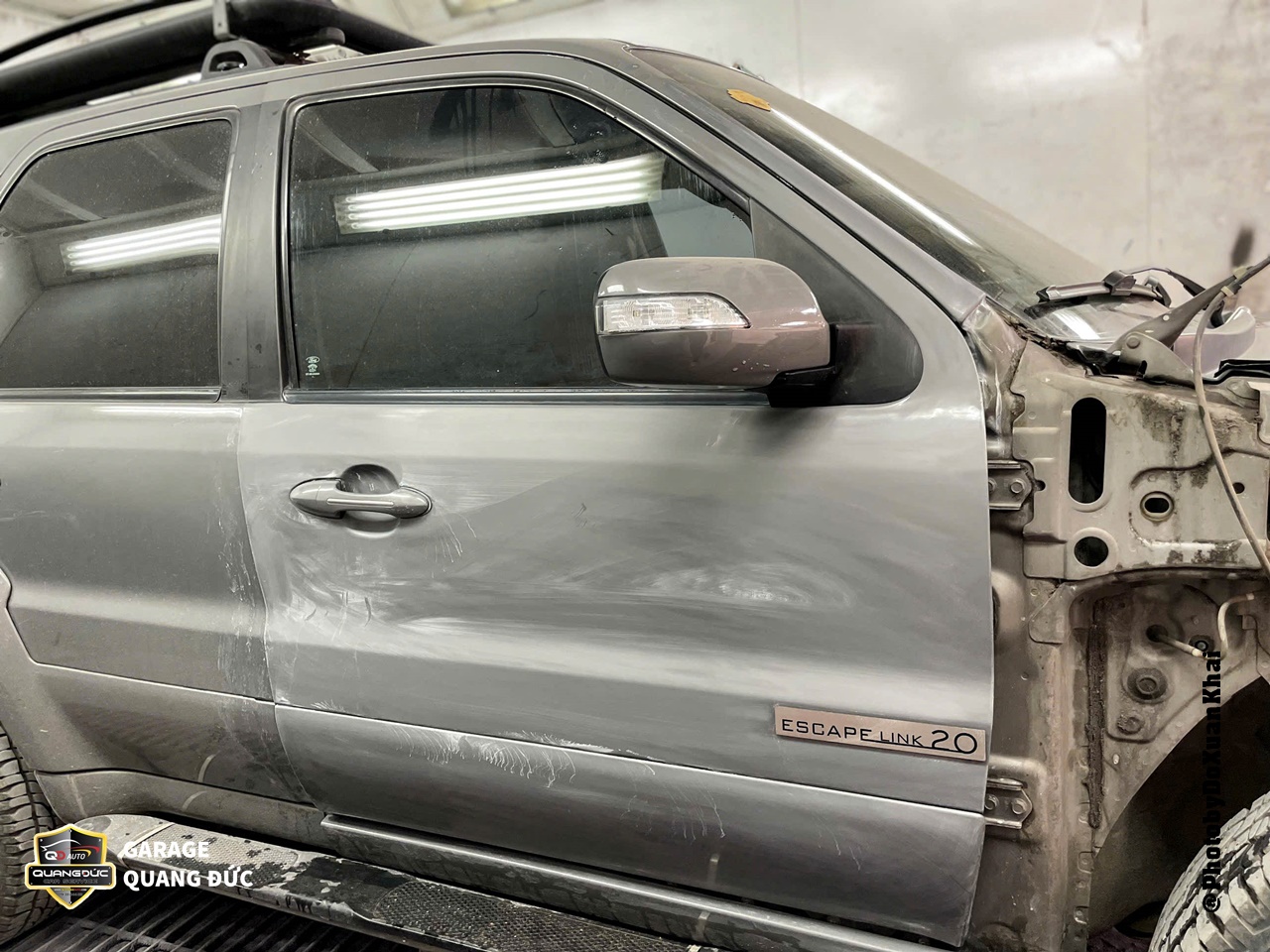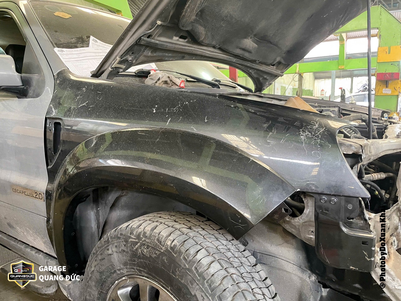 Phục hồi xe tai nạn là quá trình quan trọng để đảm bảo an toàn và hiệu suất của phương tiện. Trong trường hợp của chiếc xe FORD ESCAPE thuộc đời 2009 màu xám xi măng sau khi gặp tai nạn sơ bộ kiểm tra phần đầu bị vỡ đèn, móp rách Badershock (BDS) trước, biến dạng tai xe. Vì vậy, để tân trang lại diện mạo sang trọng vốn có, chủ xe đã lựa chọn Garage Quang Đức Auto để tiến hành phục hồi, sửa chữa.