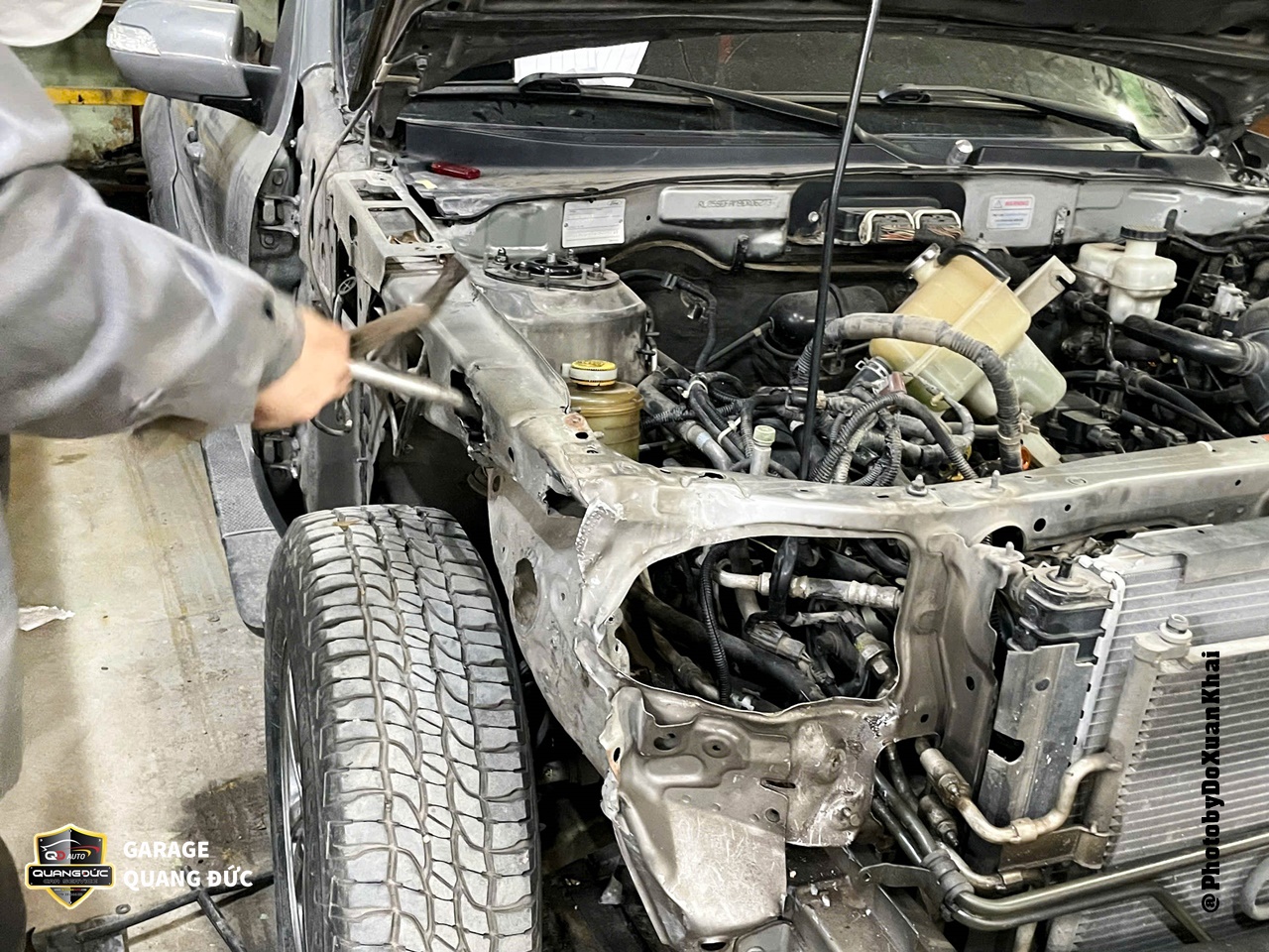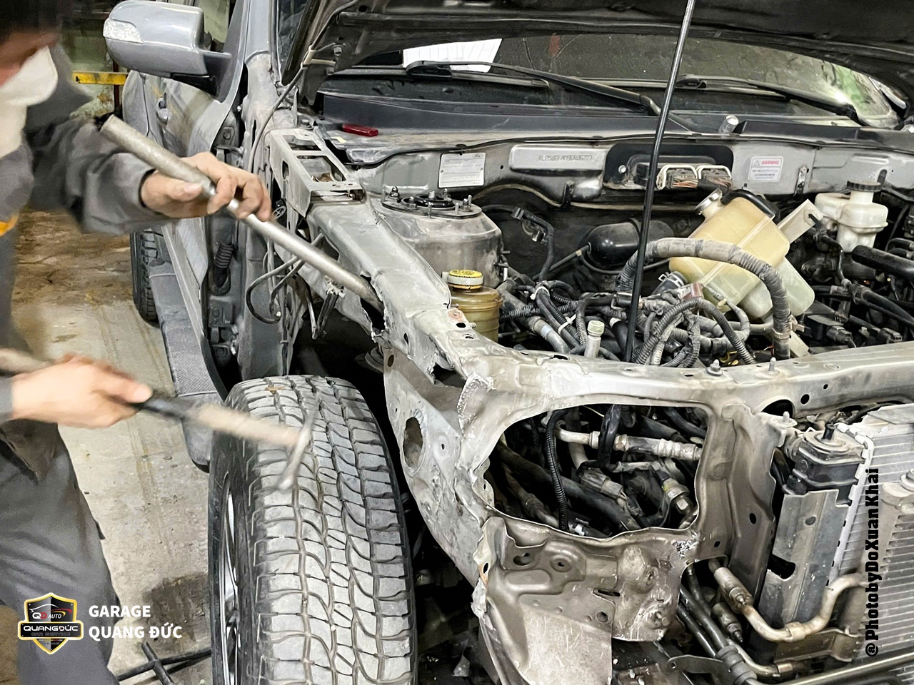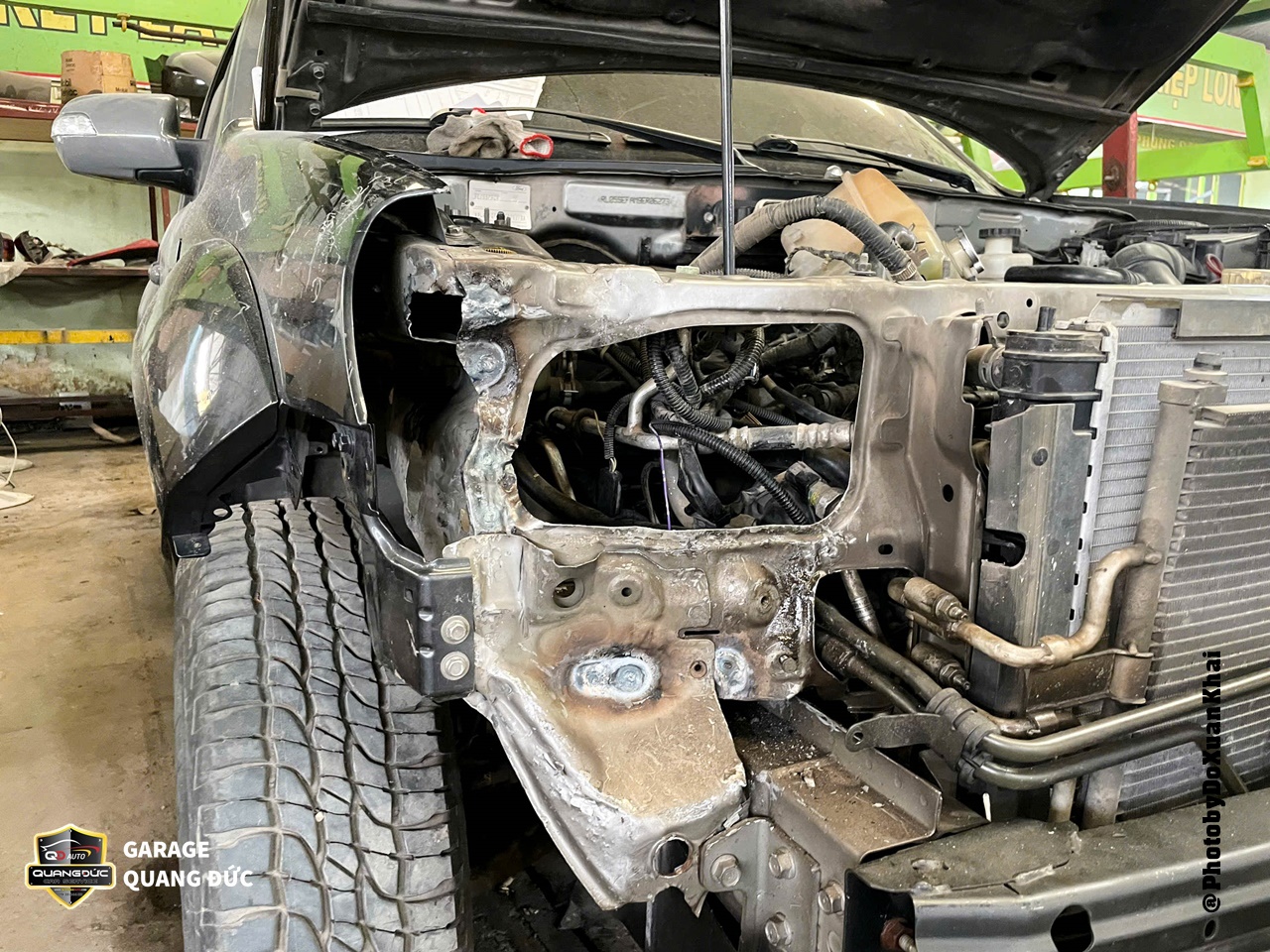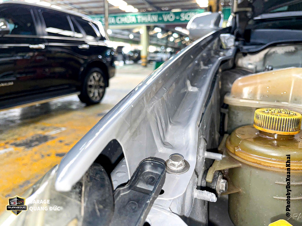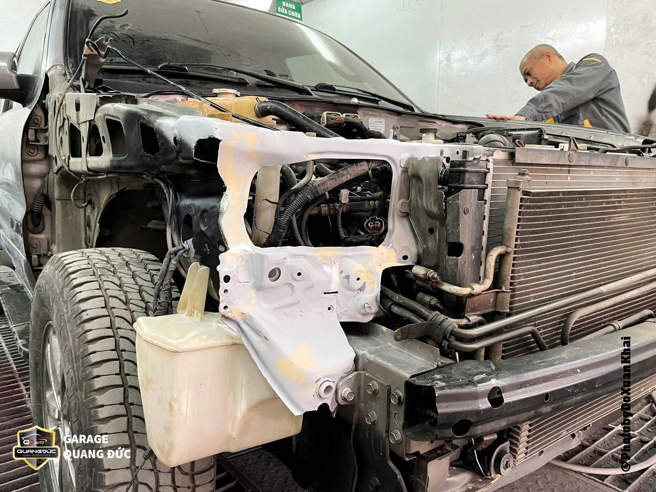 Phục hồi xe tai nạn là quá trình quan trọng để đảm bảo an toàn và hiệu suất của phương tiện. Trong trường hợp của chiếc xe FORD ESCAPE thuộc đời 2009 màu xám xi măng sau khi gặp tai nạn sơ bộ kiểm tra phần đầu bị vỡ đèn, móp rách Badershock (BDS) trước, biến dạng tai xe. Vì vậy, để tân trang lại diện mạo sang trọng vốn có, chủ xe đã lựa chọn Garage Quang Đức Auto để tiến hành phục hồi, sửa chữa.