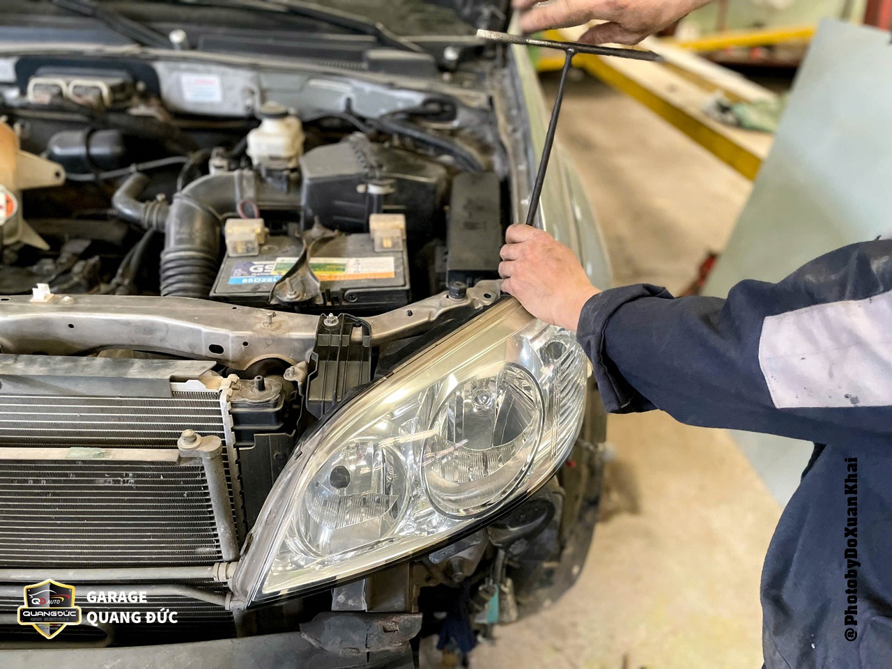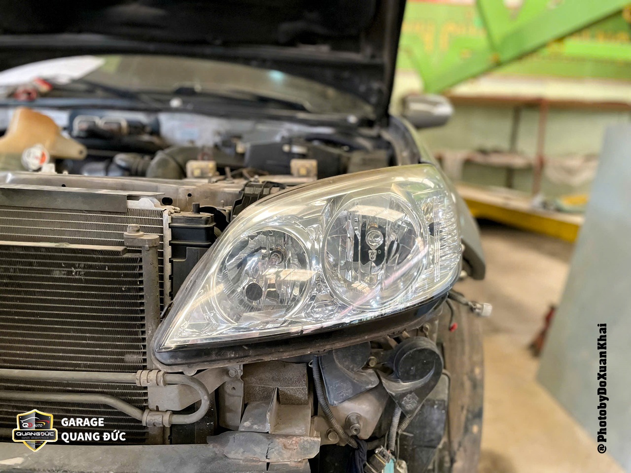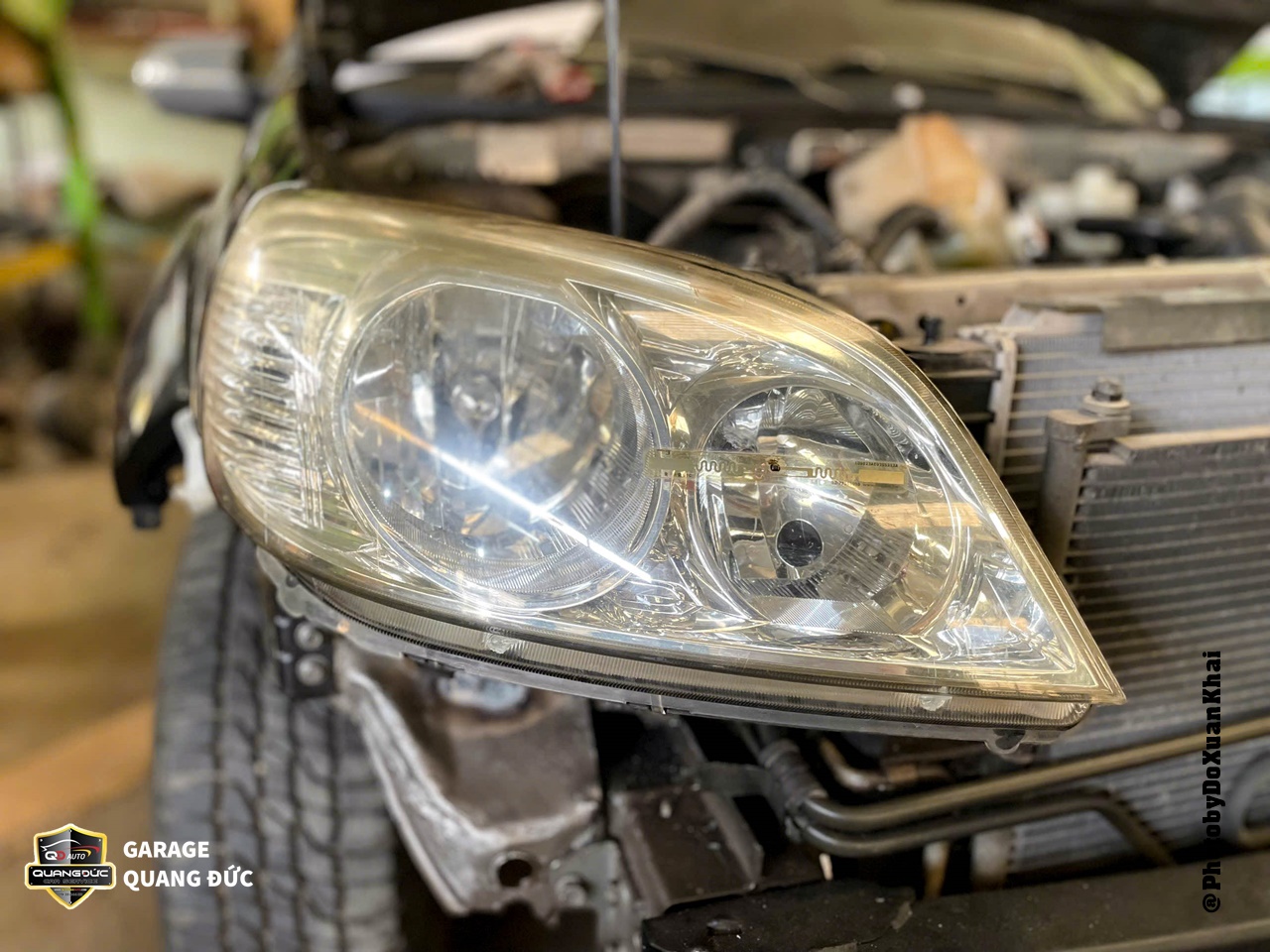 Phần đầu bị vỡ đèn chiếu sáng bên phụ được thay thế bằng một cụm đèn mới là hàng tháo xe loại đẹp để tiết kiệm chi phí, bên cạnh đó chủ xe cũng thay luôn đèn bên lái ( trước đây là đèn độ bi) về cụm đèn pha cos nguyên bản theo xe).
