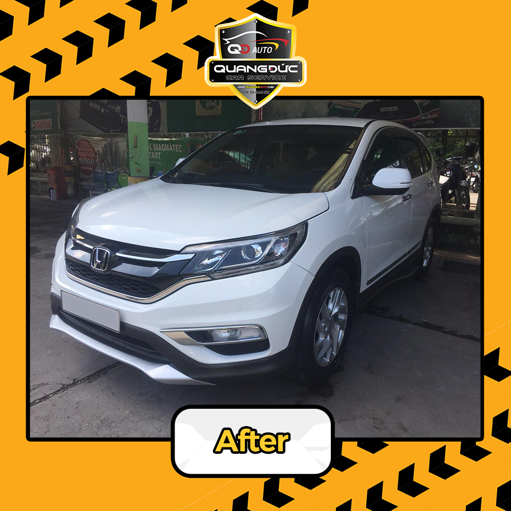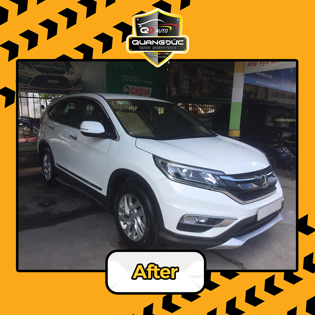 Sau kiểm tra tổng thể phần cứng, phần mềm, khung gầm máy và cầu trước, hệ thống phanh, chiếc CRV đã được tiến hành phục hồi toàn diện theo đúng quy trình chuẩn tại Quang Đức Auto: