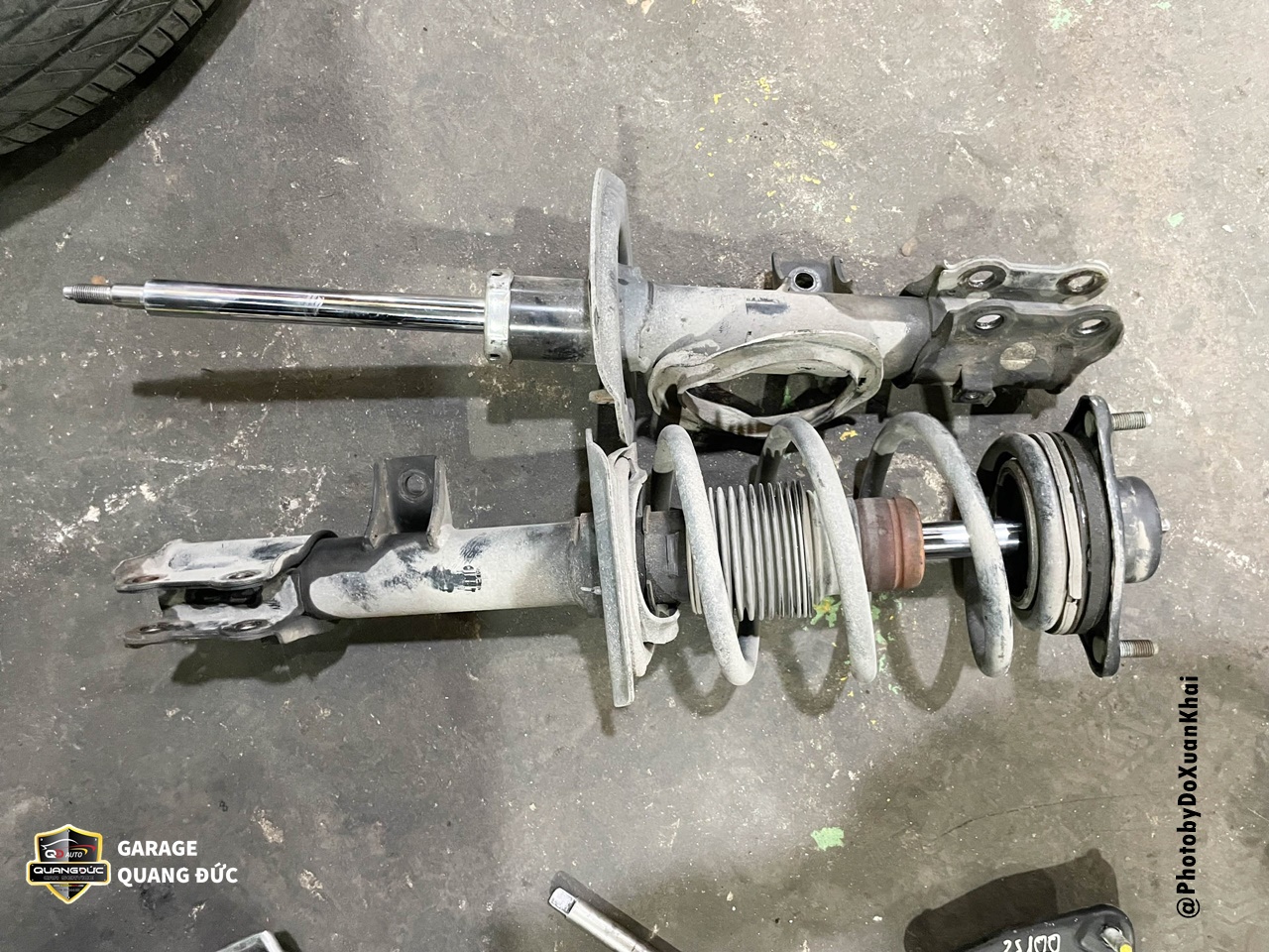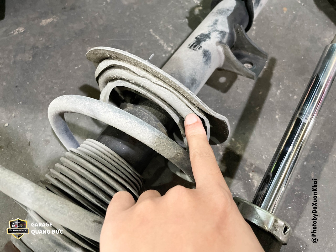 Sau 14 năm sử dụng đi được hơn 18 vạn, chiếc HYUNDAI TUCSON đã có biểu hiện kém đi ở hệ thống giảm xóc trước khiến xe bị nhún mạnh về phía trước khi phanh, xe bị lắc lư, lốp mòn không đều. Người ngồi trên xe không còn thấy sự êm ái của khi đi qua gờ giảm tốc hoặc những chỗ xóc do hành trình giảm chấn đã kém. Trên lý thuyết, con số lý tưởng để người lái xe tiến hành kiểm tra, thay thế bộ giảm xóc ô tô là từ 80.000 - 140.000km tùy vào loại xe và điều kiện vận hành thường xuyên. Với các hiện tượng trên, đội ngũ kỹ thuật đã tiến hành thay thế ống giảm chấn trước ở cả hai bên trái phải.