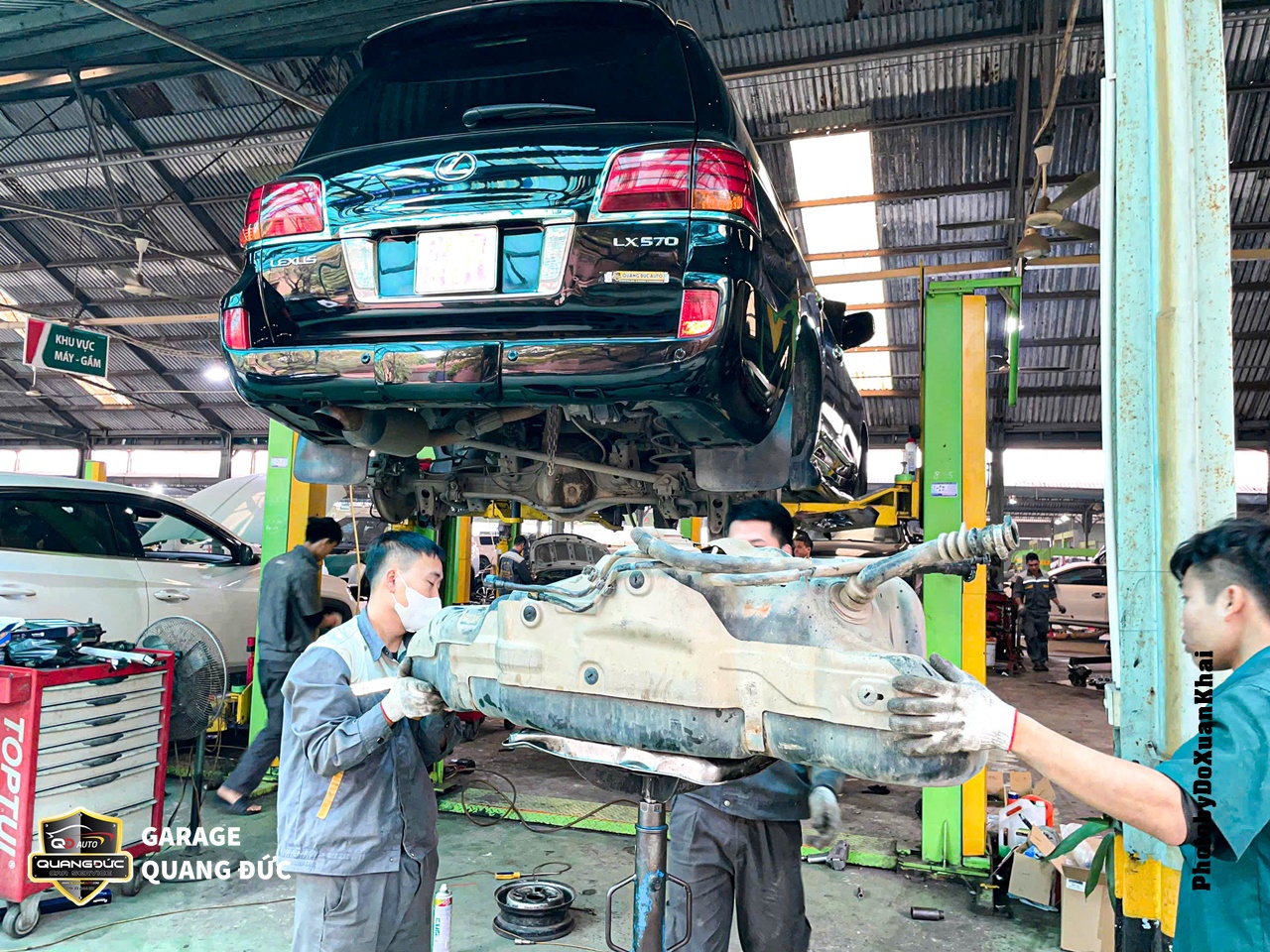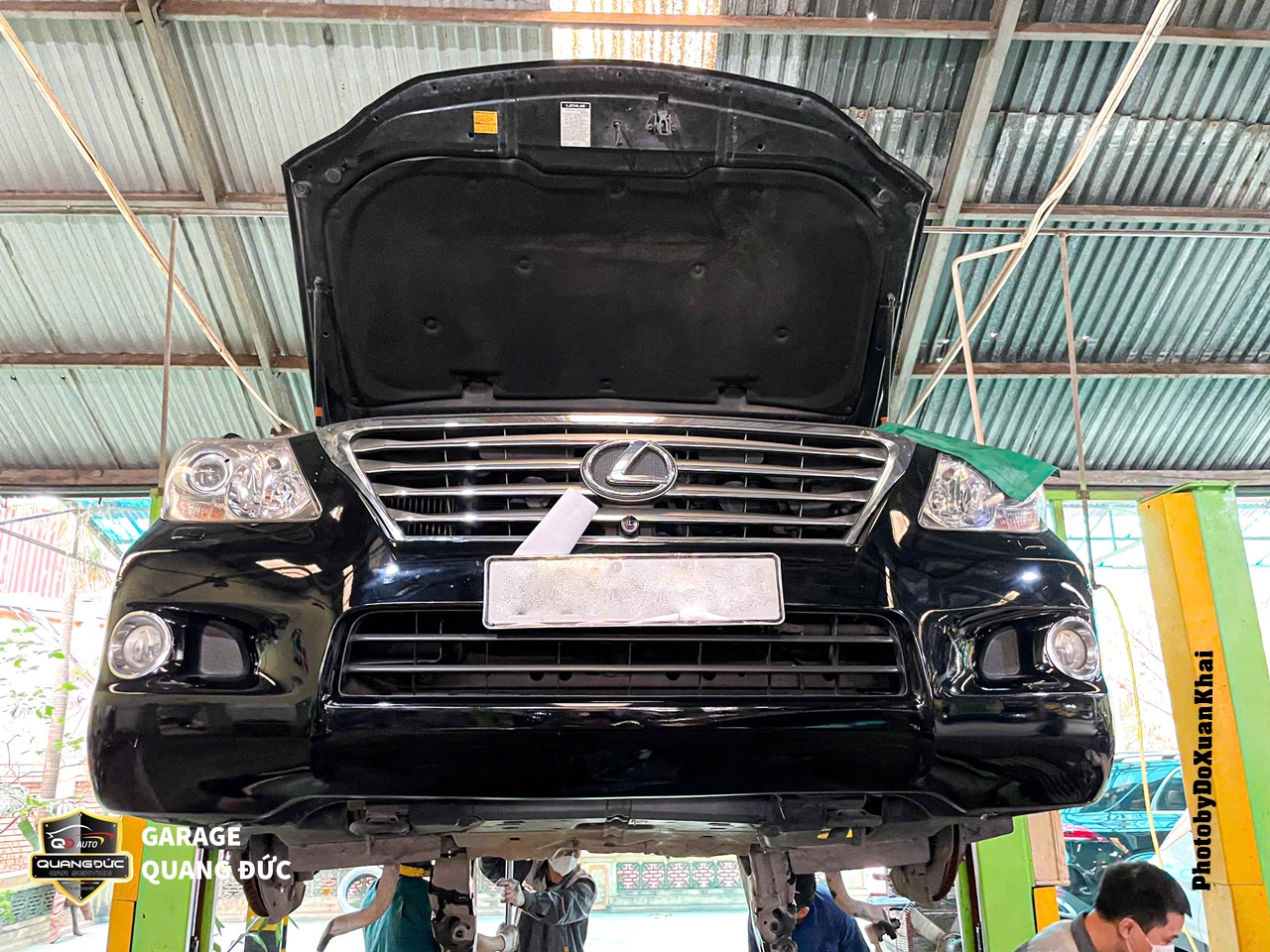 Chiếc LEXUS LX570 trong bài viết này thuộc đời 2009 đã đi được 150387km, sau khi kiểm tra, đội ngũ kỹ thuật của Quang Đức Auto đã nhận thấy má phanh mòn; piston phanh xuất hiện vết sứt mẻ; giảm xóc chảy dầu hành trình nhún kém; ốp cân bằng, Rotuyn cân bằng bị rách, nứt cao su.