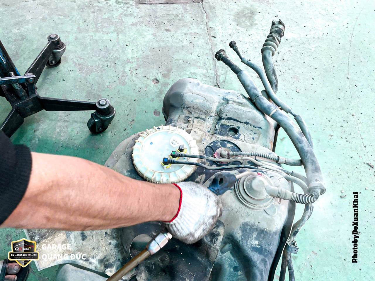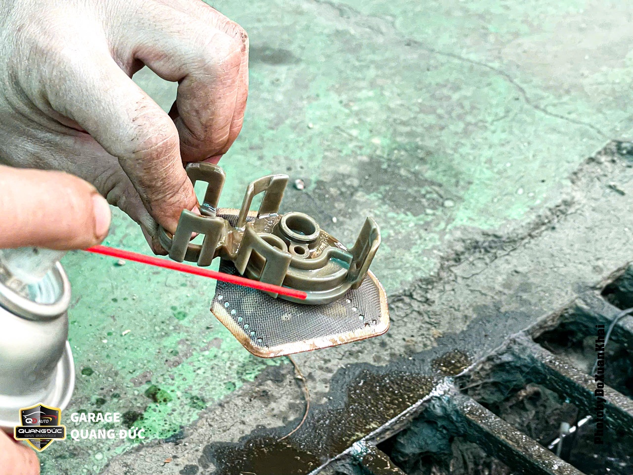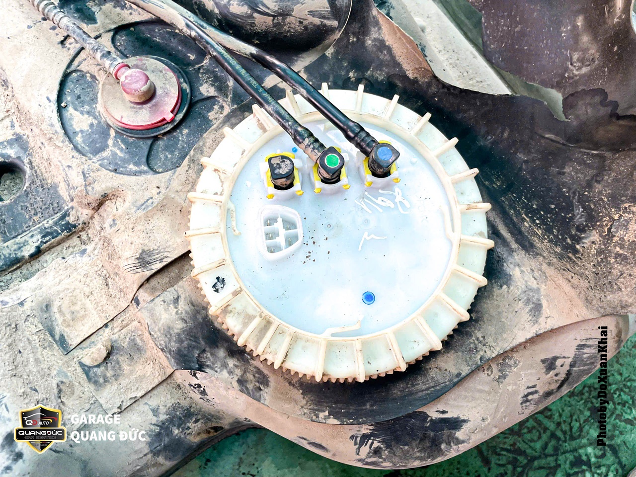 Nguyên nhân là do bơm xăng bị tắc nghẽn, lọc xăng bẩn nên lượng xăng đi qua ít, động cơ không được cung cấp đầy đủ mức nhiên liệu cần thiết, lúc có lúc không, khiến máy có máy không dẫn đến tình trạng bỏ máy khi động cơ hoạt động. Sau khi nắm bắt được tình trạng đó, chúng tôi đã tiến hành thay thế lọc trong cụm bơm xăng trên chiếc LEXUS LX570.