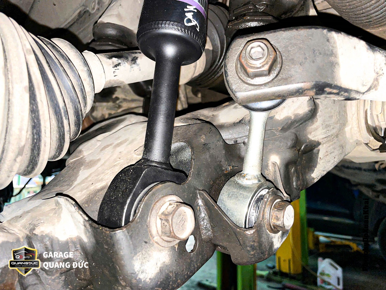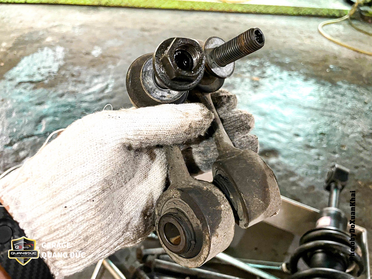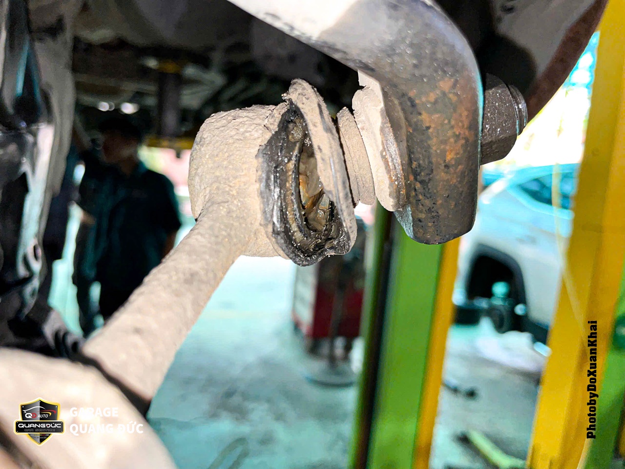 Sau khi kiểm tra, đội ngũ kỹ thuật của Quang Đức Auto đã nhận thấy Rotuyn cân bằng bị bụi bẩn bám vào sâu bên trong gây bó kẹt, cao su ốp cân bằng khô cứng do đó cần thay thế các chi tiết này.