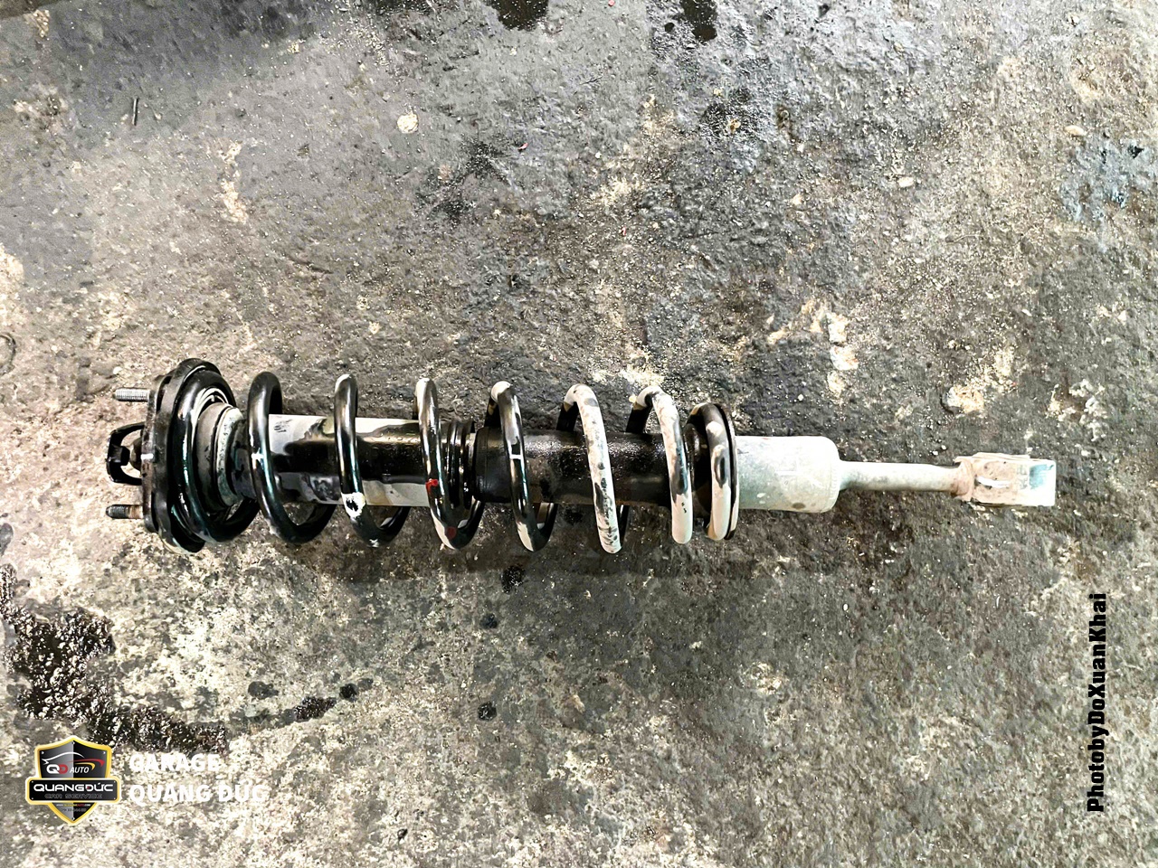 Sau 15 năm sử dụng đi được hơn 15 vạn, chiếc LEXUS LX570 đã có biểu hiện kém đi ở hệ thống giảm xóc trước khiến xe bị nhún mạnh về phía trước khi phanh, xe bị lắc lư, lốp mòn không đều.Còn ở phía sau người ngồi trên xe không còn thấy sự êm ái của chiếc xe sang khi đi qua gờ giảm tốc hoặc những chỗ xóc do hành trình giảm chấn đã kém. Trên lý thuyết, con số lý tưởng để người lái xe tiến hành kiểm tra, thay thế bộ giảm xóc ô tô là từ 80.000 - 140.000km tùy vào loại xe và điều kiện vận hành thường xuyên. Với các hiện tượng trên, đội ngũ kỹ thuật đã tiến hành thay thế ống giảm chấn trước - sau ở cả hai bên trái phải.