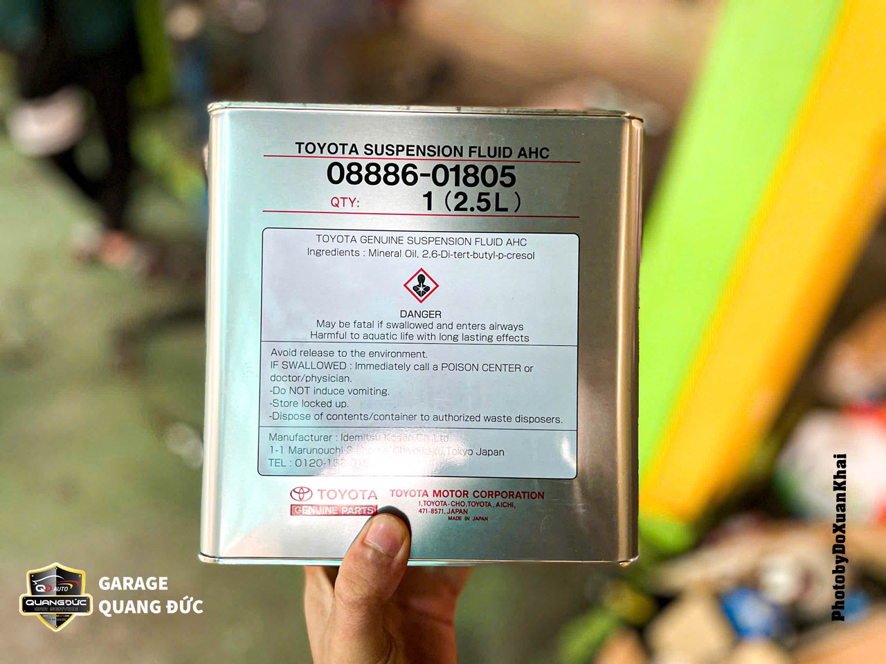 Đặc biệt, trên LX570 sau khi thay giảm xóc phải thay cả dầu thủy lực giảm chấn chính hãng như can 2,5L dưới đây.