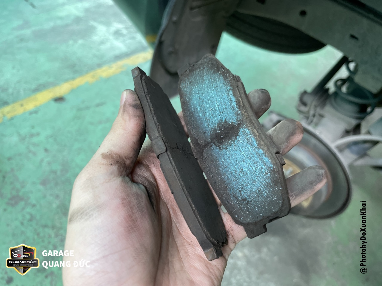 Vệ sinh má, đĩa phanh: Loại bỏ các bụi bẩn, tăng hiệu quả mát giữa má phanh và đĩa phanh, Tuy nhiên trên chiếc xe này má phanh đã mòn hết nên cần phải thay thế mới hàng xịn chuẩn mã theo xe.