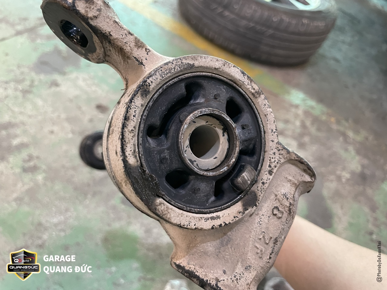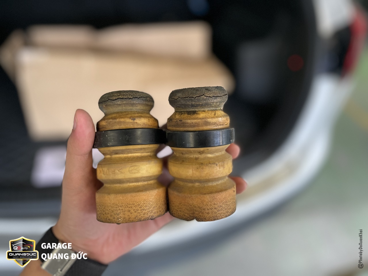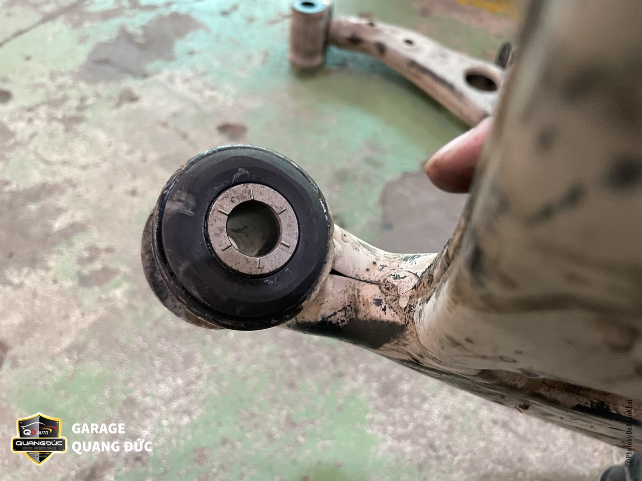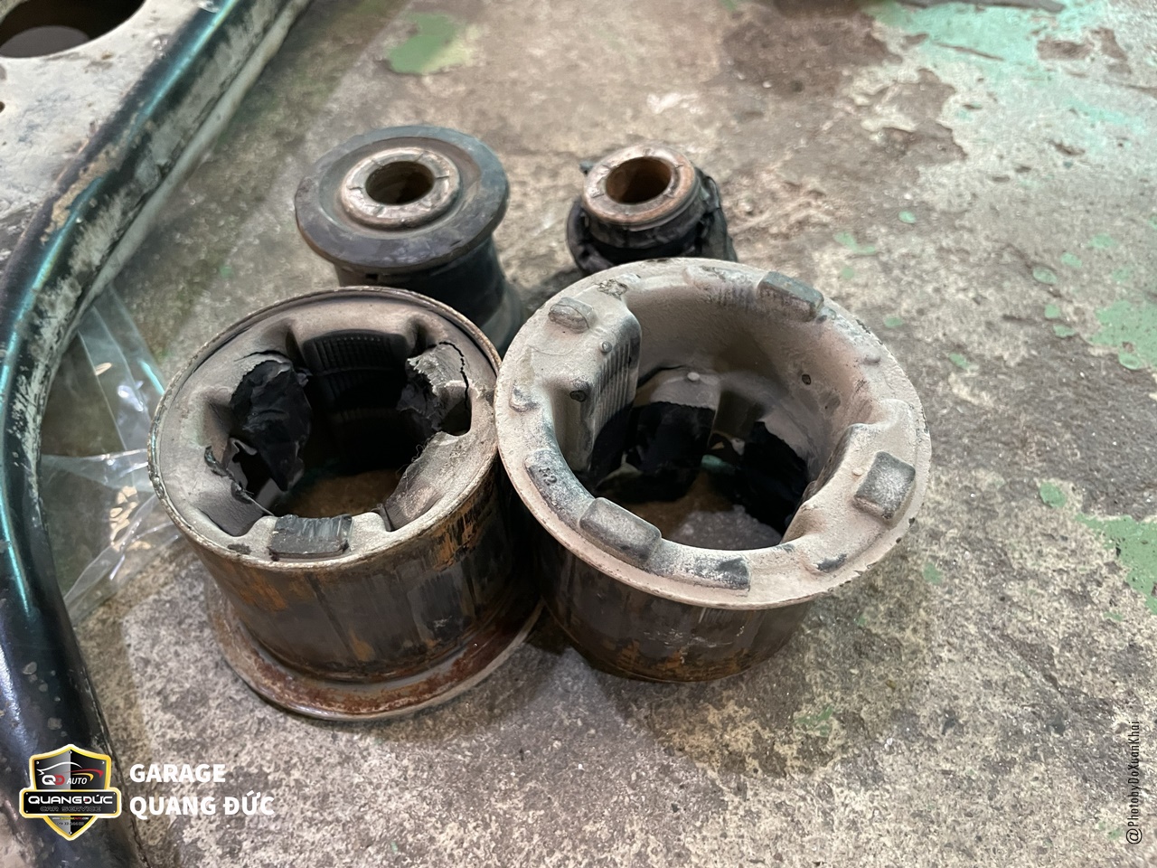 Sau khi được sự đồng ý của chủ xe, đội ngũ kỹ thuật của Quang Đức Auto đã tiến hành thay thế cao su càng A ( tiết kiệm chi phí hơn rất nhiều so với việc thay cả càng A, mà vẫn đảm bảo chất lượng), thay thế tăm bông, bát bèo, giảm chấn phía trước mới cho cả hai bên. Việc thay thế rất nhanh chóng chỉ mất khoảng 2 tiếng, tiết kiệm được rất nhiều chi phí và đặc biệt vẫn đảm bảo hệ thống hoạt động tốt, an toàn.