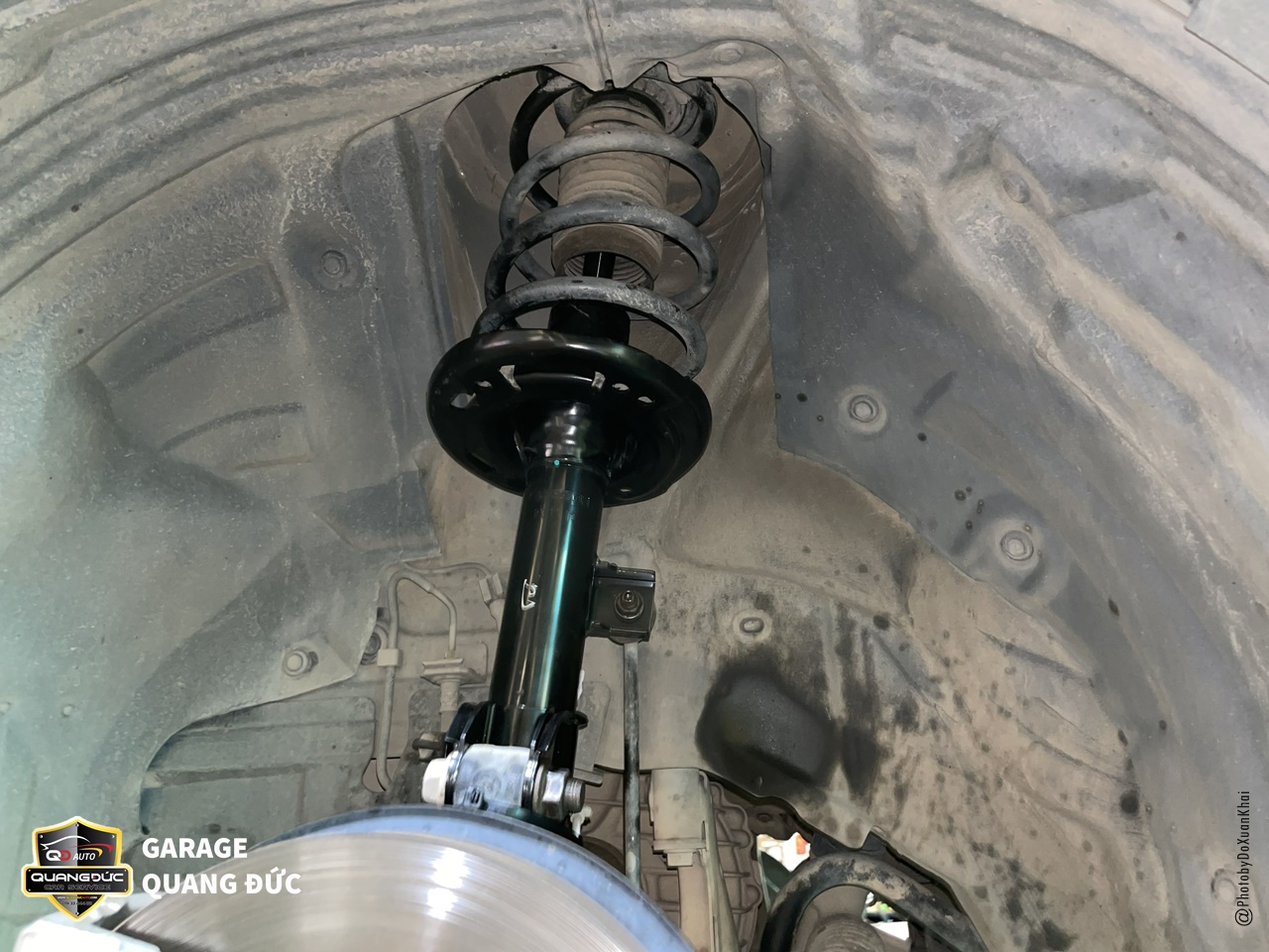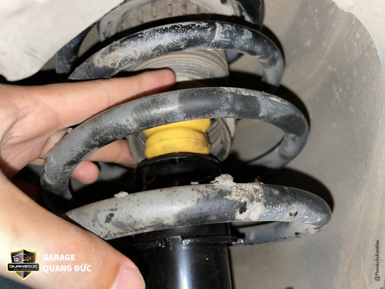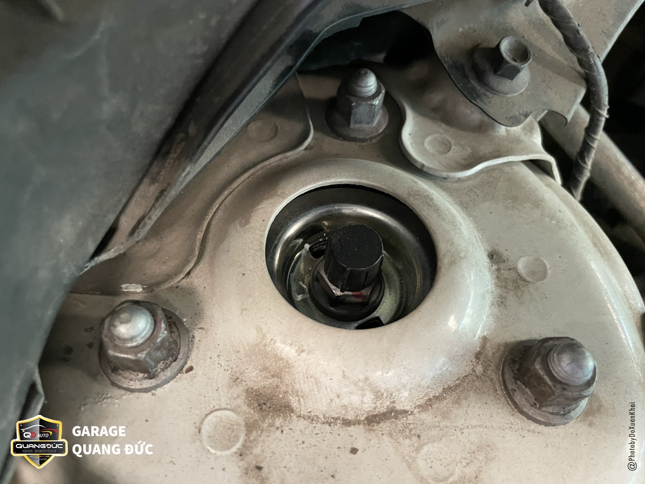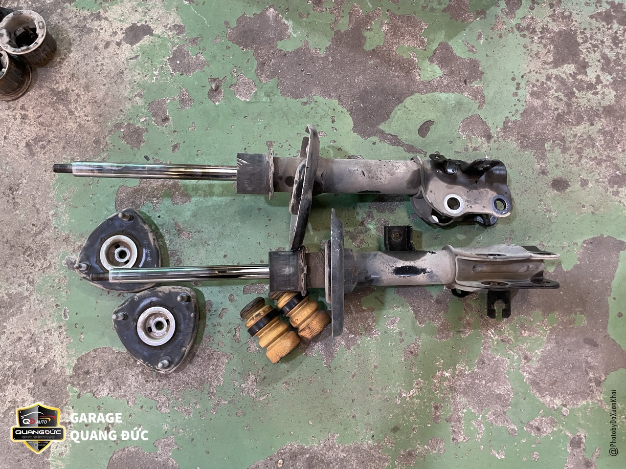 Sau khi được sự đồng ý của chủ xe, đội ngũ kỹ thuật của Quang Đức Auto đã tiến hành thay thế cao su càng A ( tiết kiệm chi phí hơn rất nhiều so với việc thay cả càng A, mà vẫn đảm bảo chất lượng), thay thế tăm bông, bát bèo, giảm chấn phía trước mới cho cả hai bên. Việc thay thế rất nhanh chóng chỉ mất khoảng 2 tiếng, tiết kiệm được rất nhiều chi phí và đặc biệt vẫn đảm bảo hệ thống hoạt động tốt, an toàn.