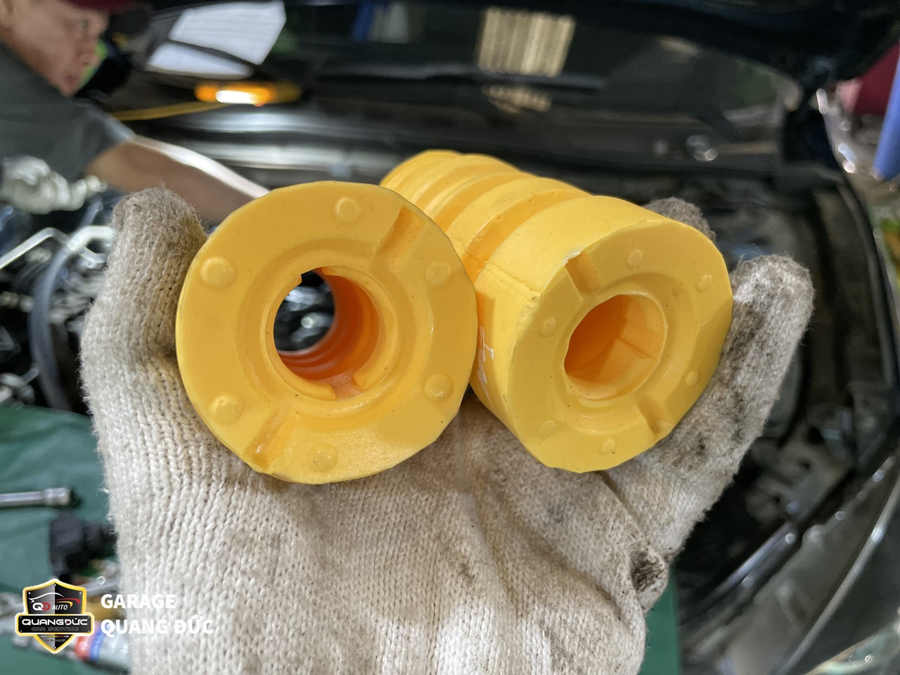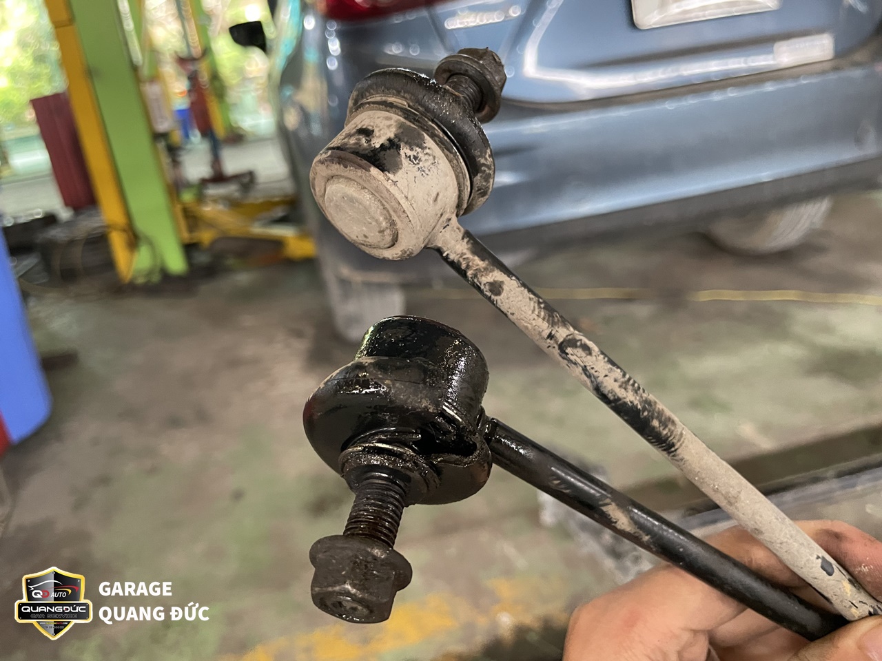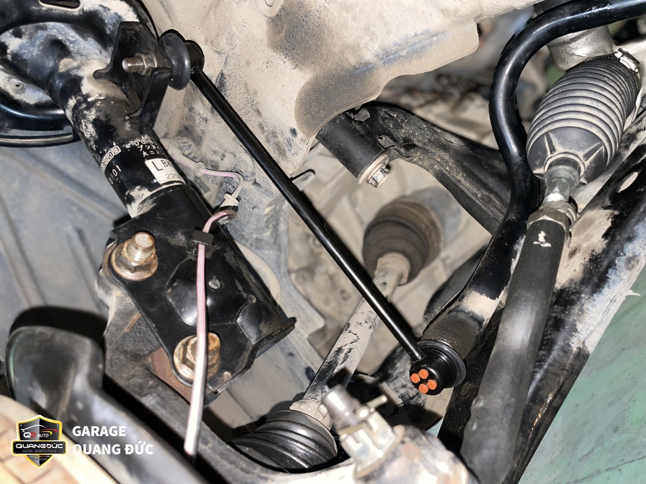 Rotuyn cân bằng, Rotuyn lái trong lái ngoài đảm bảo cho chiếc xe không bị rung lắc, kêu lọc cọc cũng như điều hướng xe theo ý muốn của người lái. Bị hỏng Rotuyn rất nguy hiểm bởi nó có thể khiến tài xế mất lái và gây ra những tai nạn nghiêm trọng. Còn tăm bông giảm xóc hoãn giảm các xung lực và lực sốc, đảm bảo chiếc xe hoạt động ổn định trên mọi cung đường gập ghềnh, ổ gà. Bởi vậy, sau khi thấy gầm xe có tiếng kêu lạ, rung lắc vô lăng, khó điều khiển, đi không êm chủ xe MAZDA3 đã tới ngay Garage Quang Đức Auto để tiến hành kiểm tra, sửa chữa.