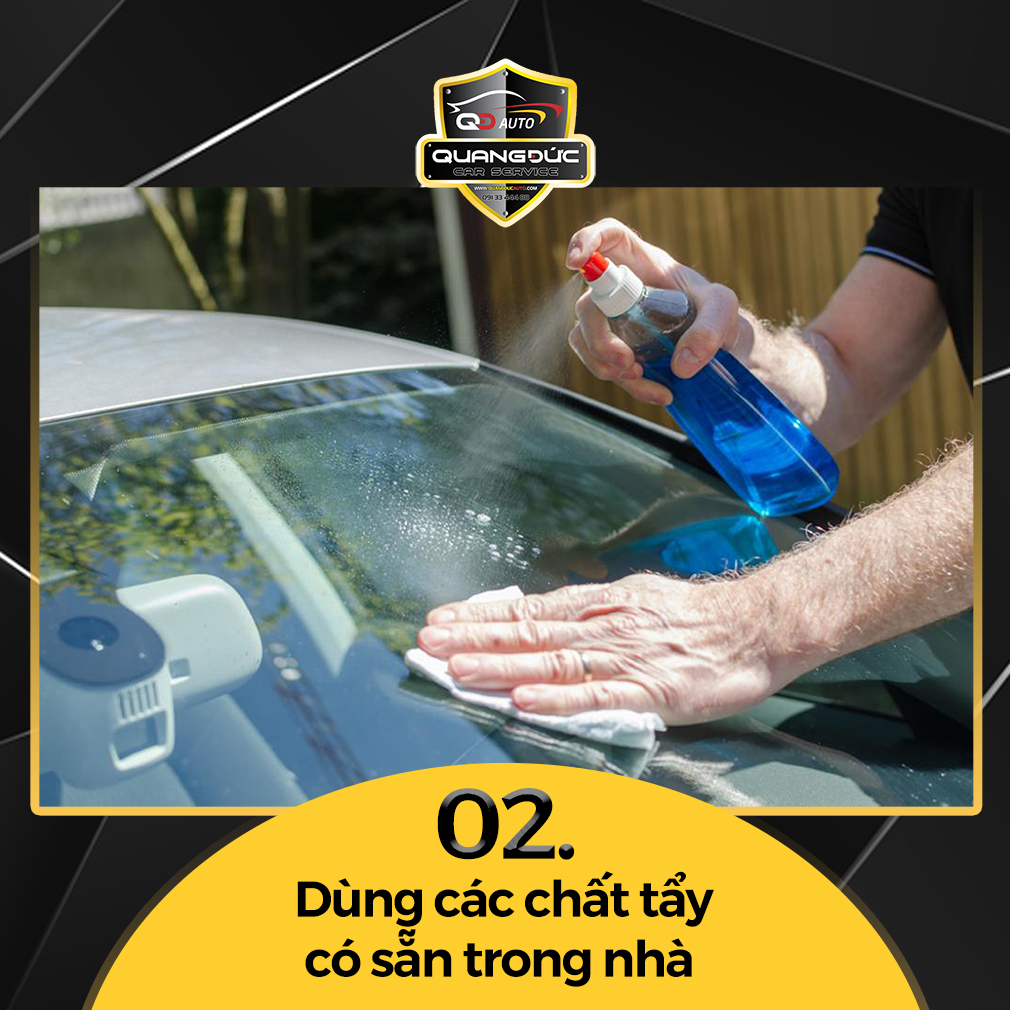 Nếu dùng chanh không hiệu quả, bạn có thể sử dụng các chất tẩy có sẵn trong nhà như tẩy , lau lên kính chắn gió, ngâm trong khoảng 10-15 phút sau đó dùng nước ấm lau chùi kính cẩn thận.