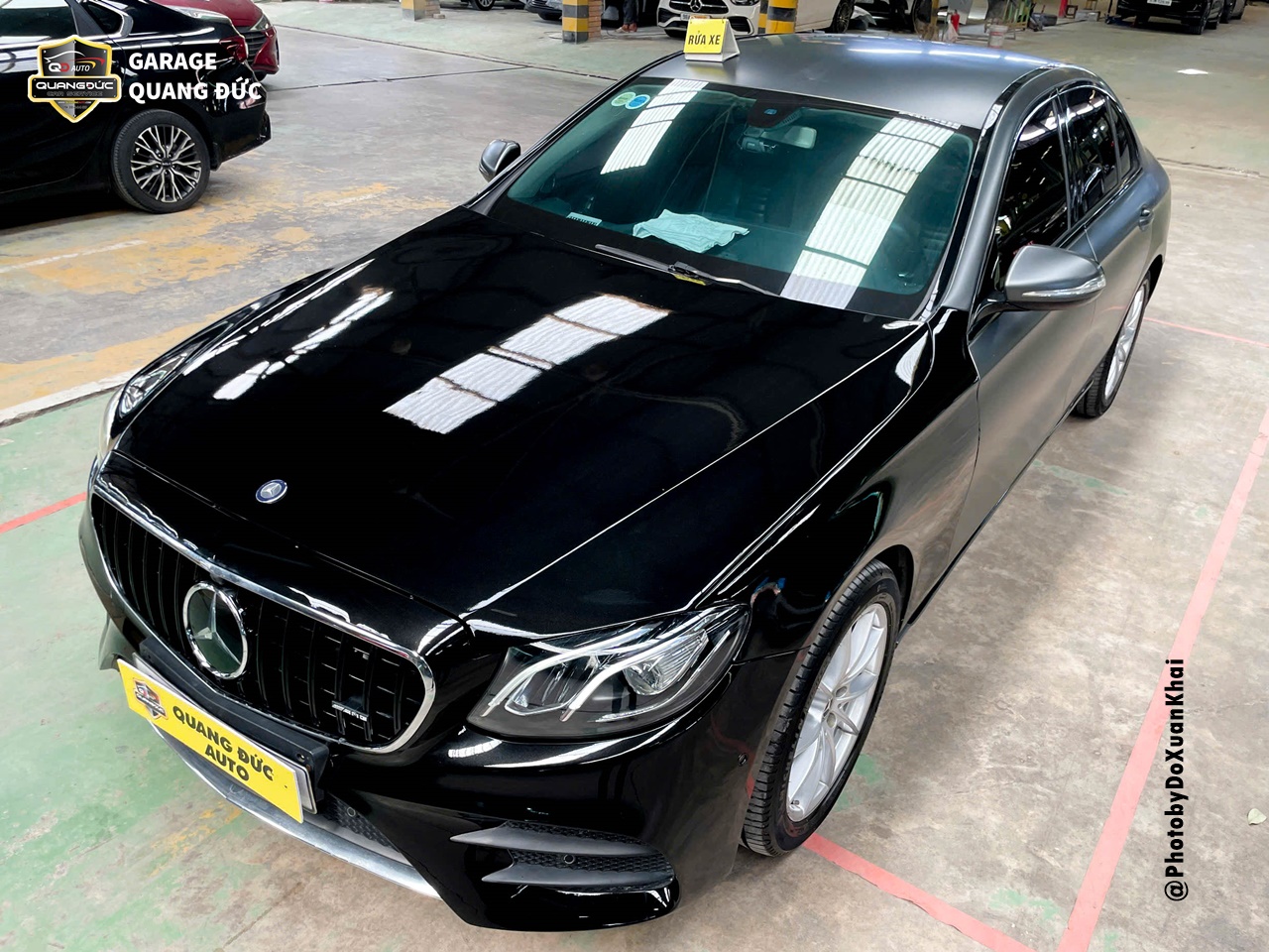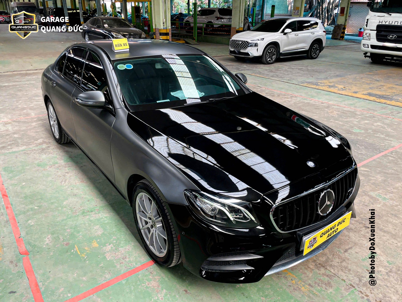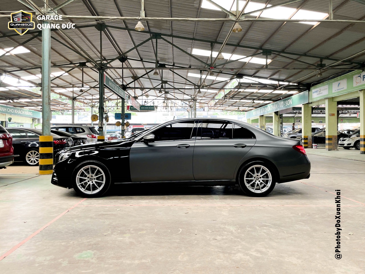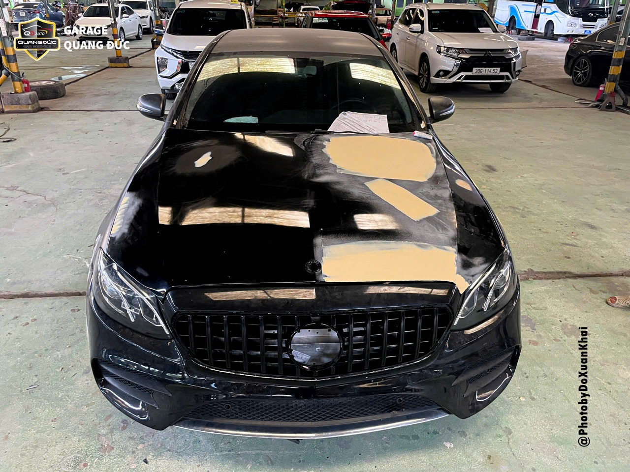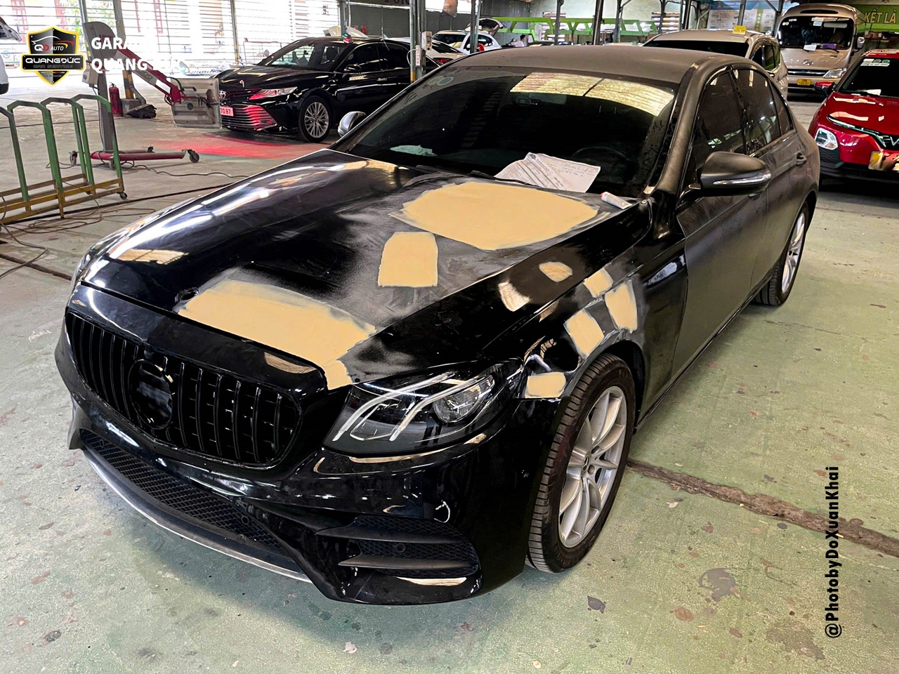 *Chiếc xe được sơn lại theo chuẩn màu nguyên bản là đen bóng, bản thân chiếc Mercedes Eclass trong bài được dán decal nên xảy ra hiện tượng các vị trí mới sơn có màu khác với những phần còn lại: