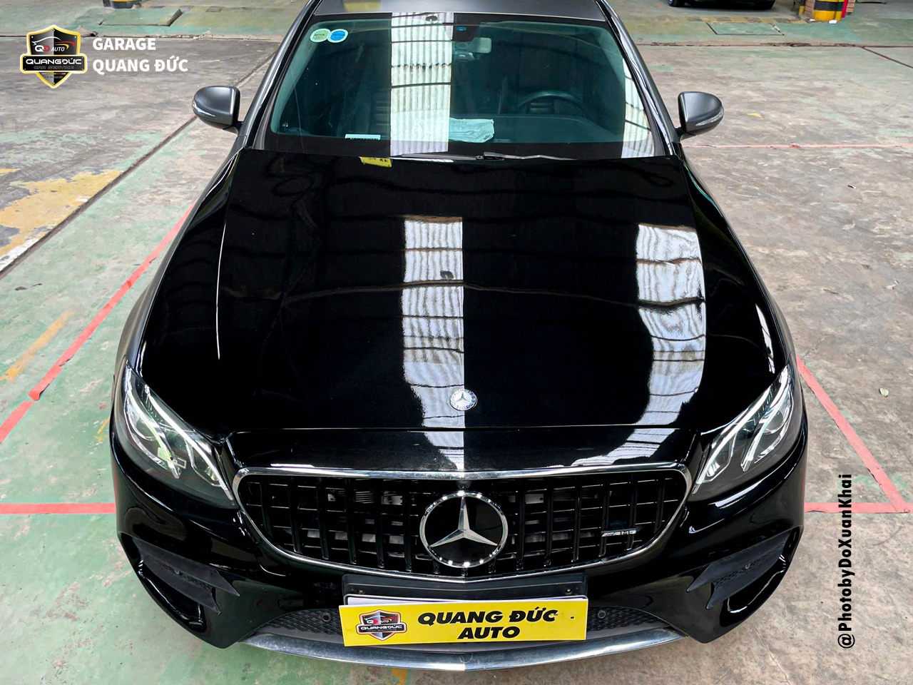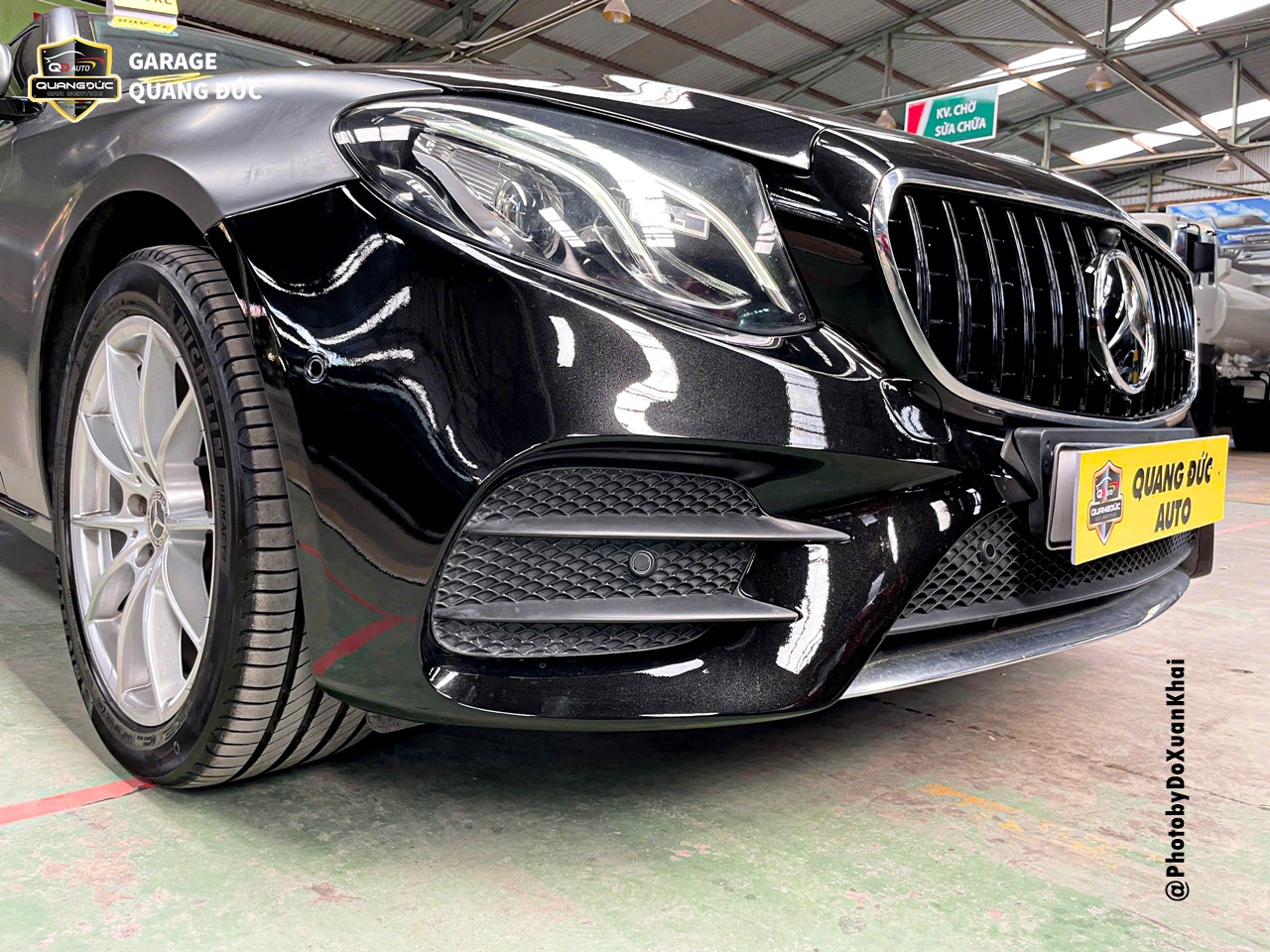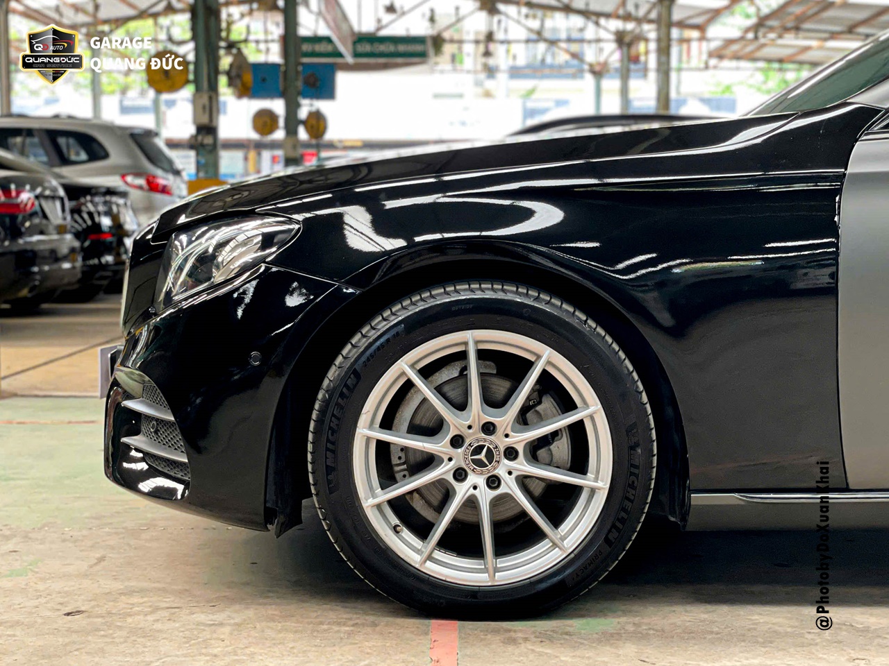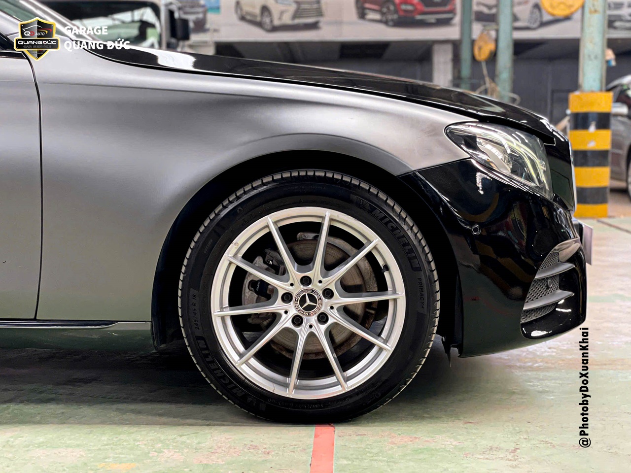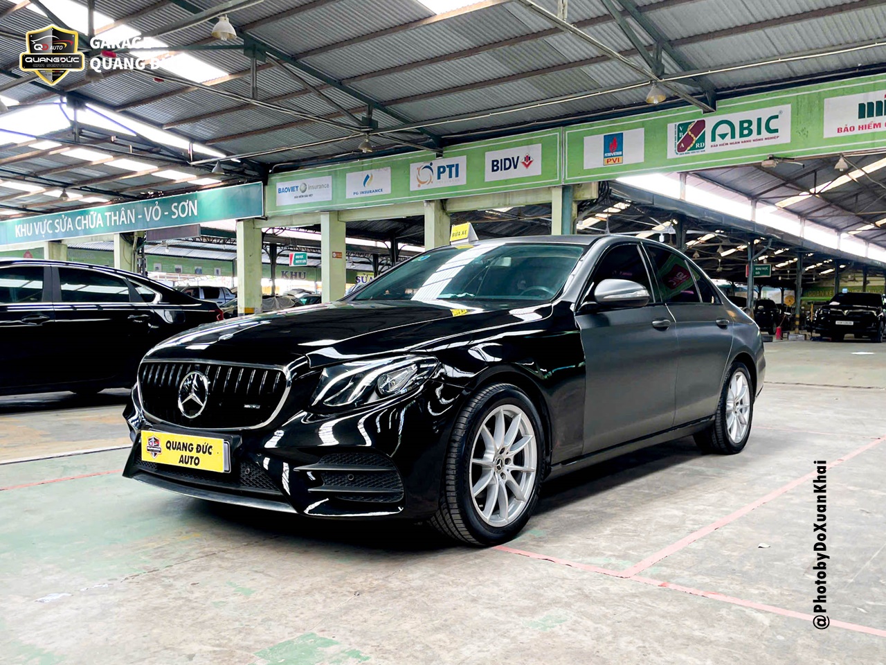 *Chiếc xe được sơn lại theo chuẩn màu nguyên bản là đen bóng, bản thân chiếc Mercedes Eclass trong bài được dán decal nên xảy ra hiện tượng các vị trí mới sơn có màu khác với những phần còn lại: