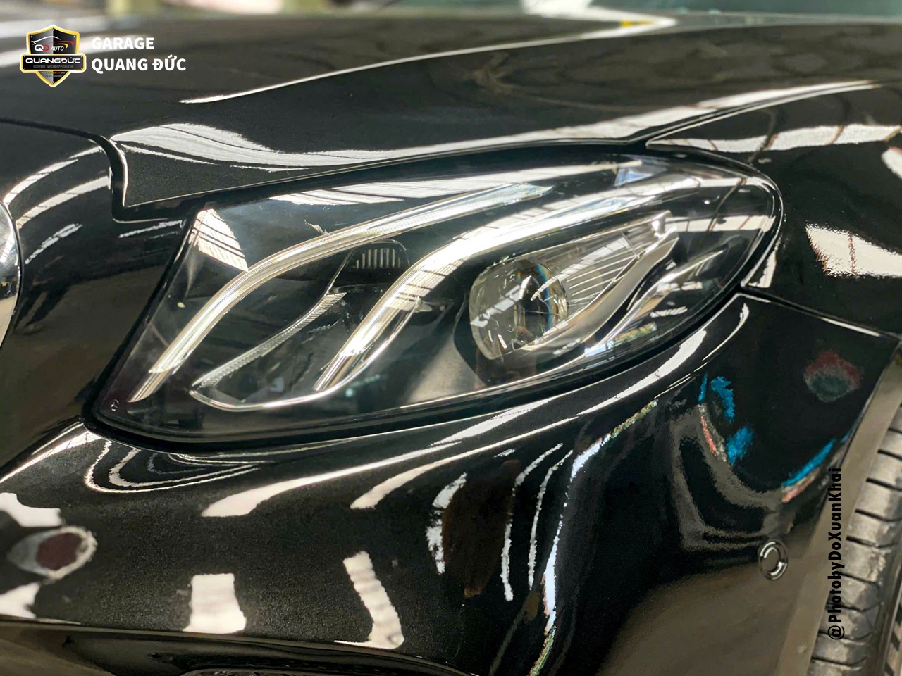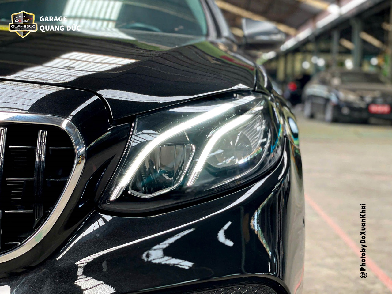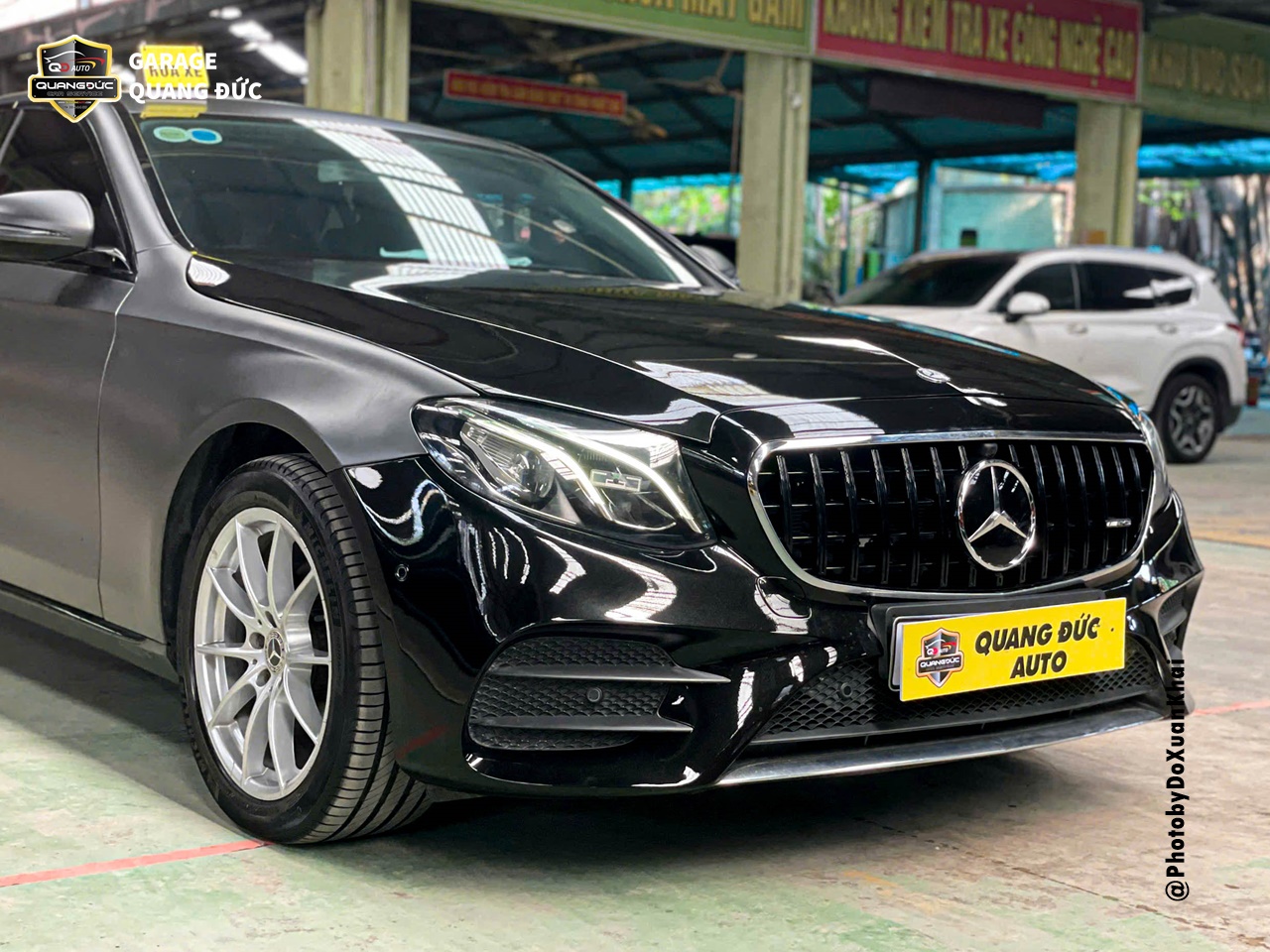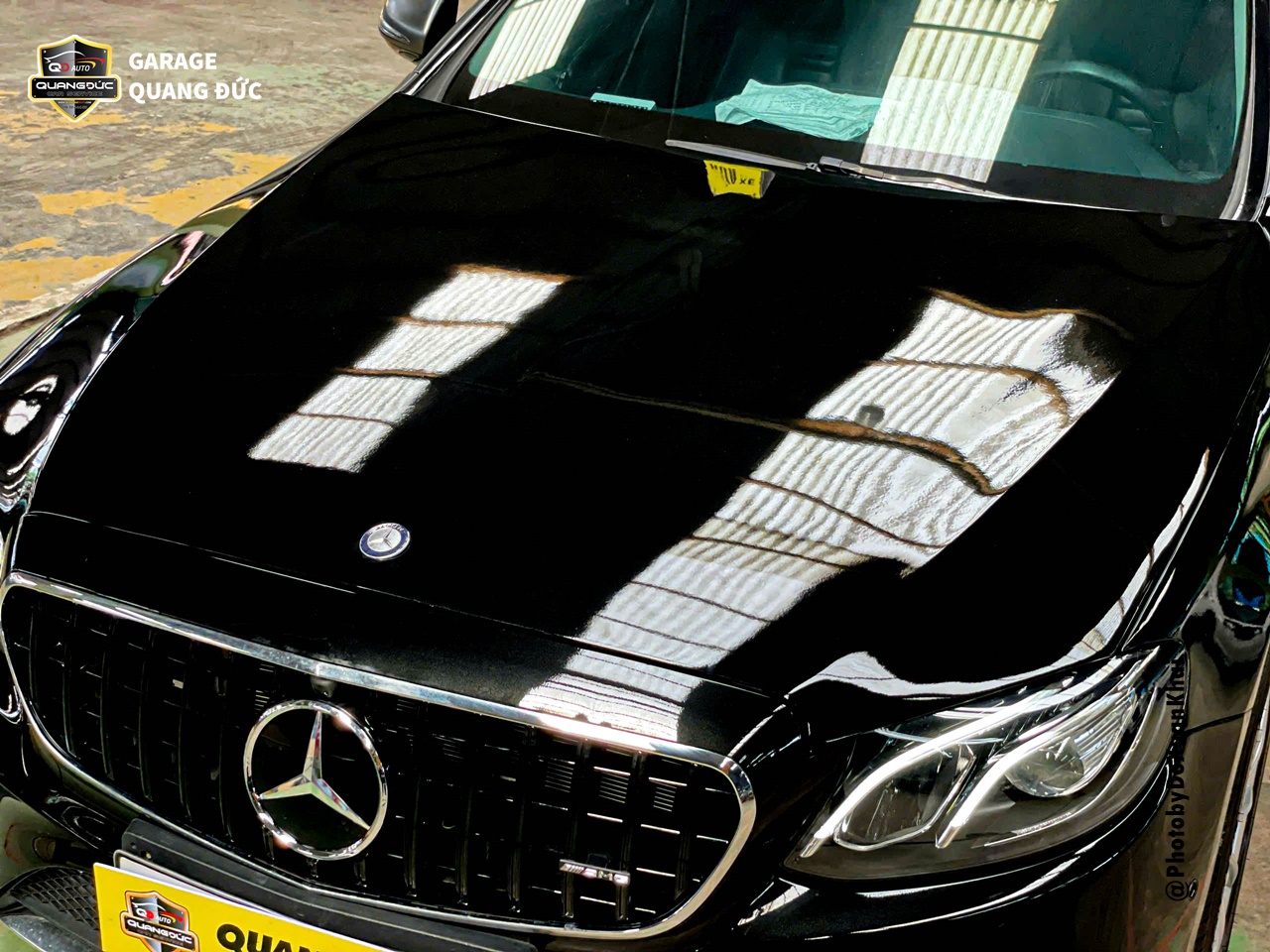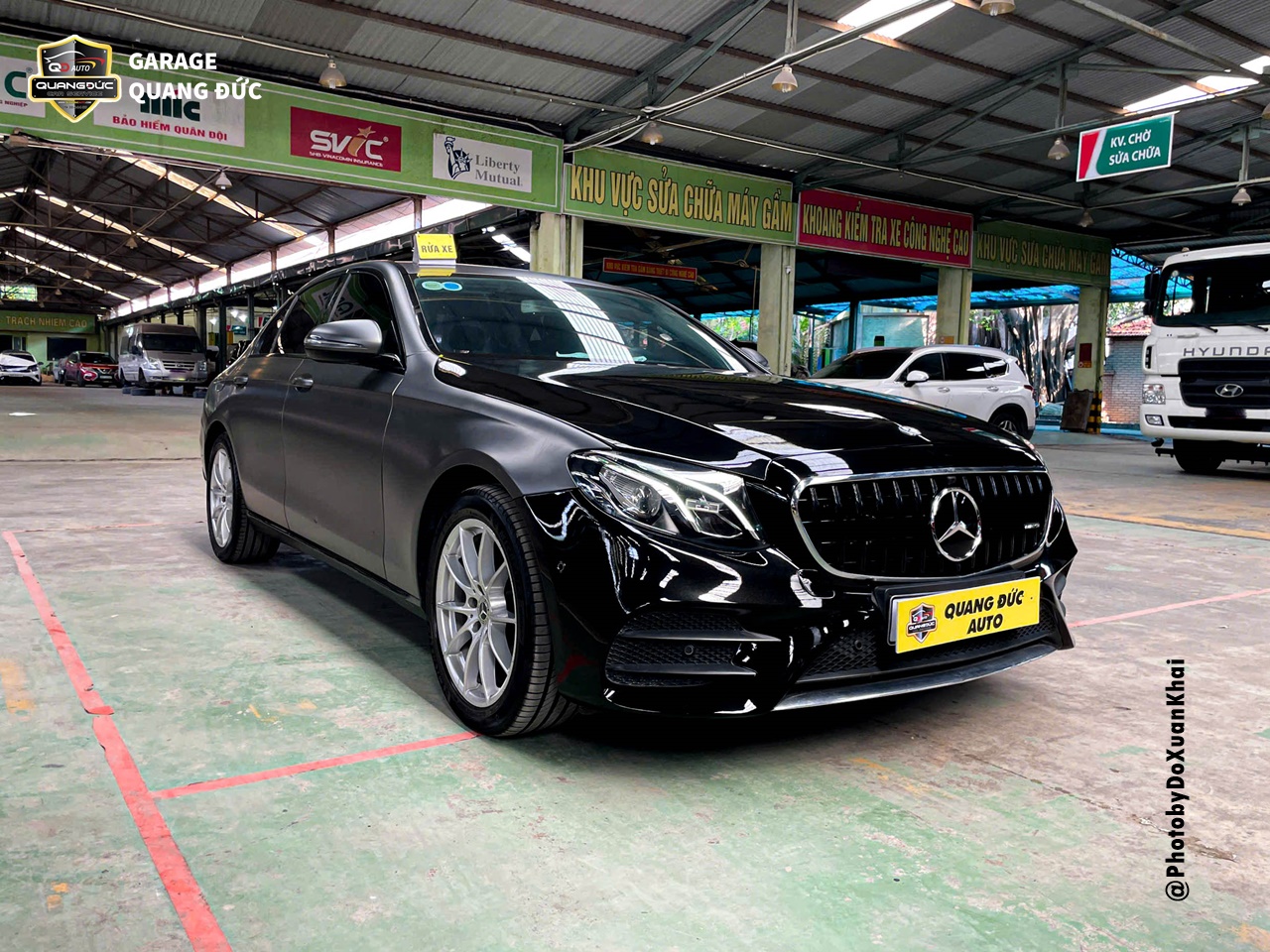 *Chiếc xe được sơn lại theo chuẩn màu nguyên bản là đen bóng, bản thân chiếc Mercedes Eclass trong bài được dán decal nên xảy ra hiện tượng các vị trí mới sơn có màu khác với những phần còn lại: