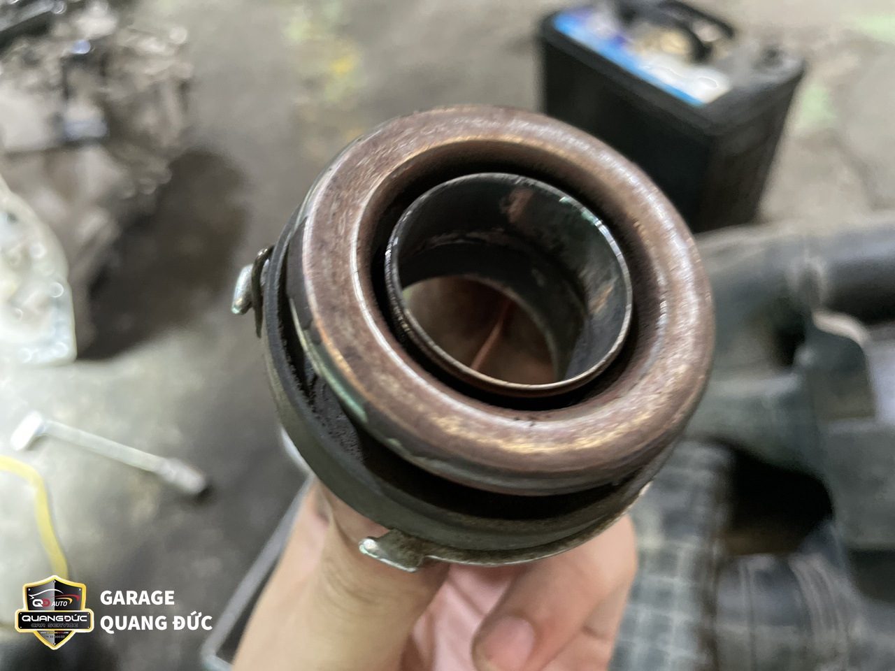 Qua quá trình tháo ra kiểm tu, Quang Đức Auto nhận thấy chiếc KIA SOLUTO đã bị mòn Bi T, lá côn, đĩa ép, các bộ phận hư hỏng là chuột côn và tổng côn.