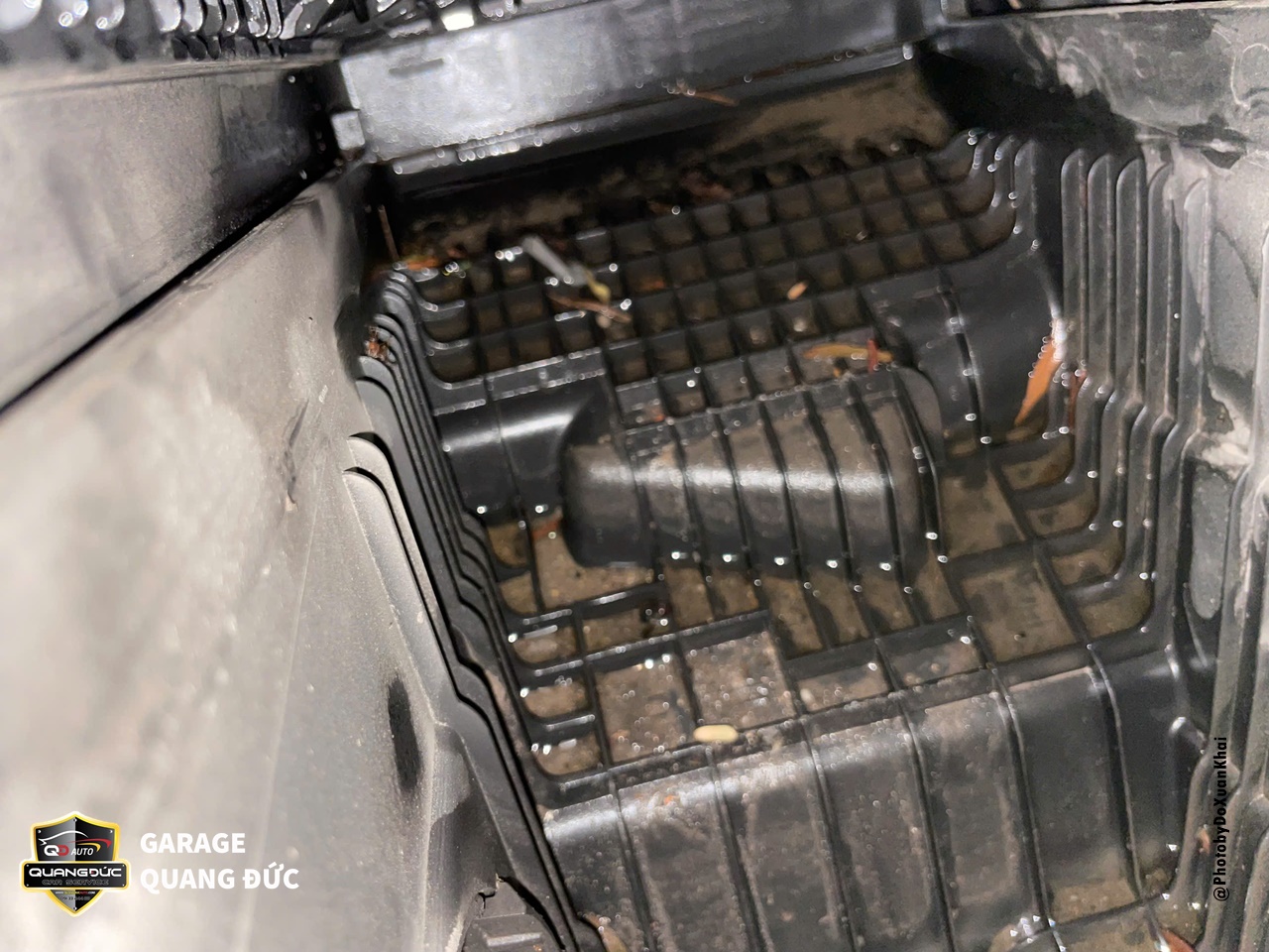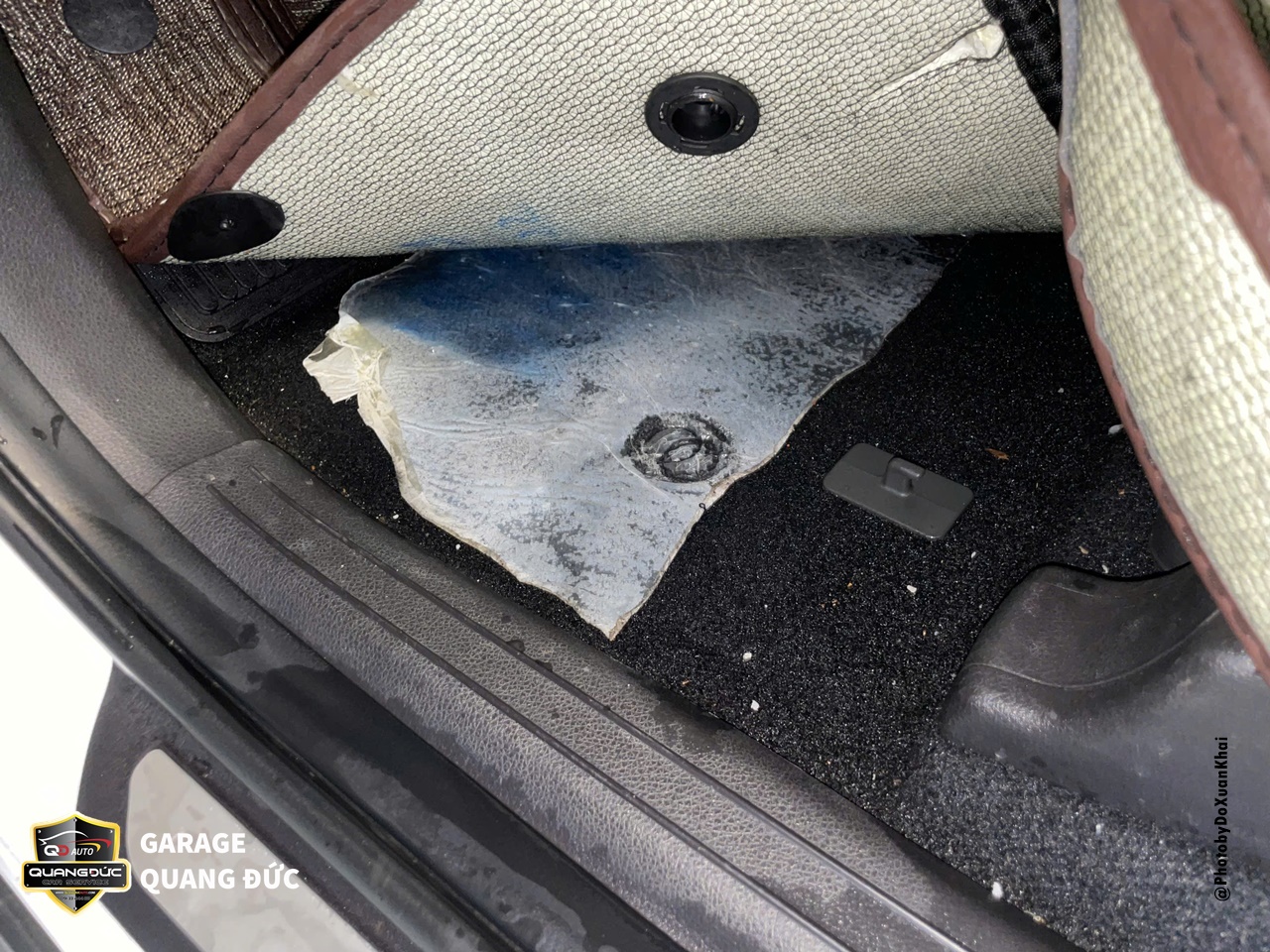 Khi xe về xưởng garage uy tín sẽ được kiểm tra và vệ sinh nội thất trước tiên. Nước vào bên trong xe gây ẩm mốc và còn mang theo cả đất cát mà khi nước rút đi sẽ đọng lại ở mọi ngóc ngách. Do đó, trước hết cần mở tất cả các cửa xe cho thông thoáng, thấm khô nước đọng, ẩm ướt, sau đó tháo hết thảm sàn xe ra để vệ sinh.