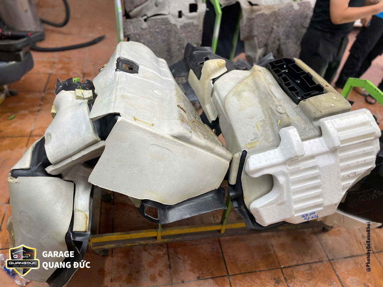 Các bộ phận bằng nỉ hoặc vải cần được vệ sinh, sấy khô. Việc này các bác sẽ được Quang Đức Auto thực hiện ngay sau khi xe ra khỏi chỗ ngập, vì càng để lâu càng khó xử lý ẩm mốc.