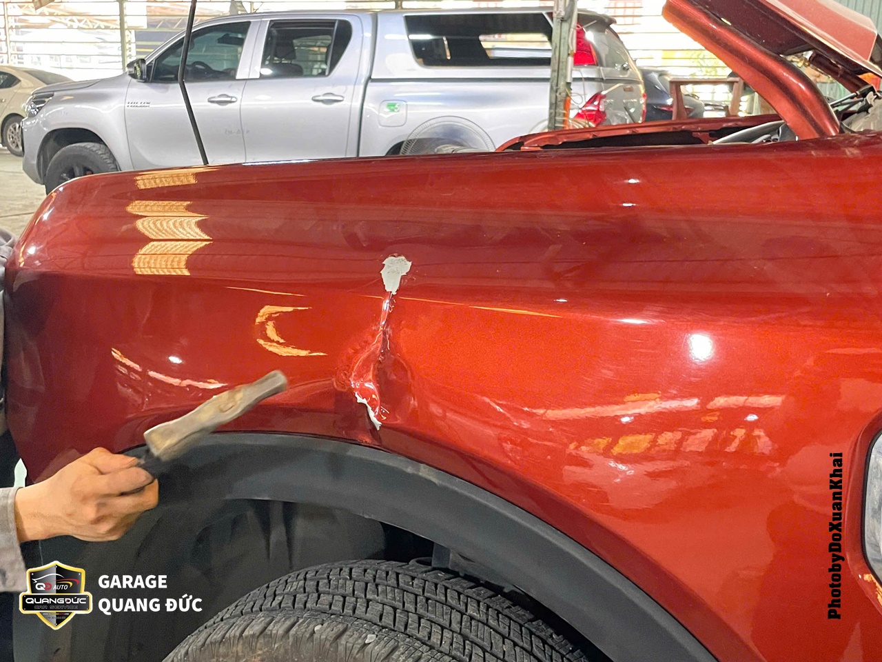 Phục hồi xe tai nạn là một quá trình quan trọng để đảm bảo an toàn, hiệu suất và vẻ đẹp của phương tiện. Trong trường hợp của chiếc xe FORD RANGER sau khi gặp tai nạn phần đầu bị nhứ chân đèn, biến dạng xương đèn, móp xước Badershock (BDS), móp nắp capo. Vì vậy, để tân trang lại diện mạo như mới, chủ xe đã lựa chọn Garage Quang Đức Auto để tiến hành phục hồi, sửa chữa.