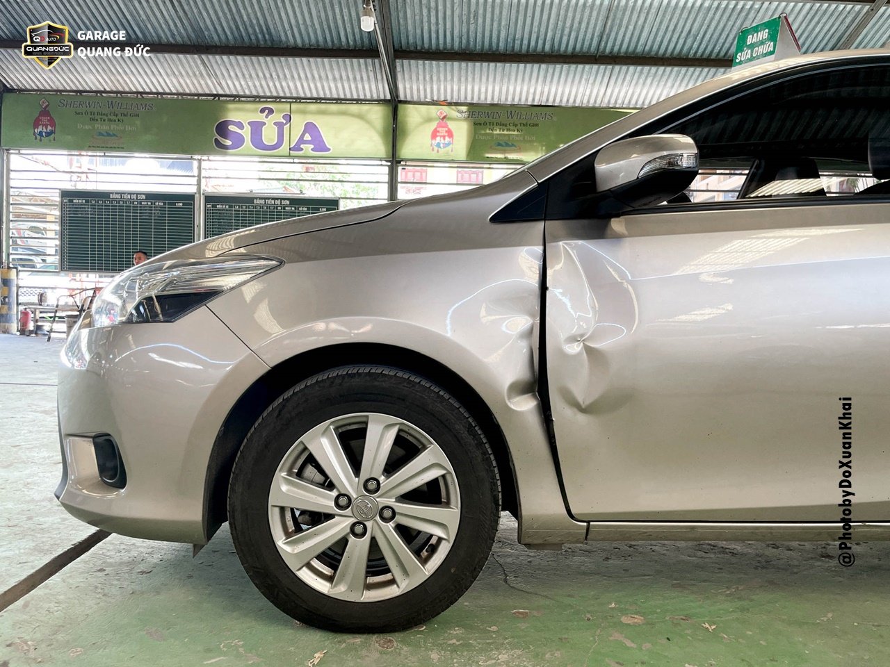 Phục hồi xe tai nạn cụ thể là sửa chữa thân vỏ cho chiếc xe phổ thông. Trong trường hợp của chiếc xe TOYOTA VIOS thuộc đời 2016, sau khi gặp tai nạn tai xe cùng cửa trước biến dạng nặng. Vì vậy, để tân trang lại chủ xe đã lựa chọn Garage Quang Đức Auto để tiến hành phục hồi, sửa chữa.