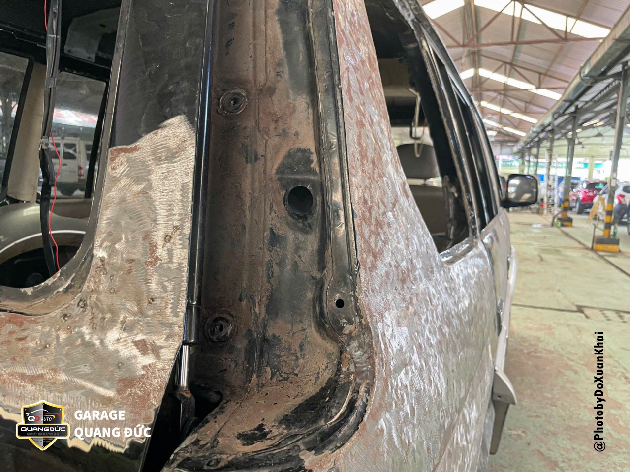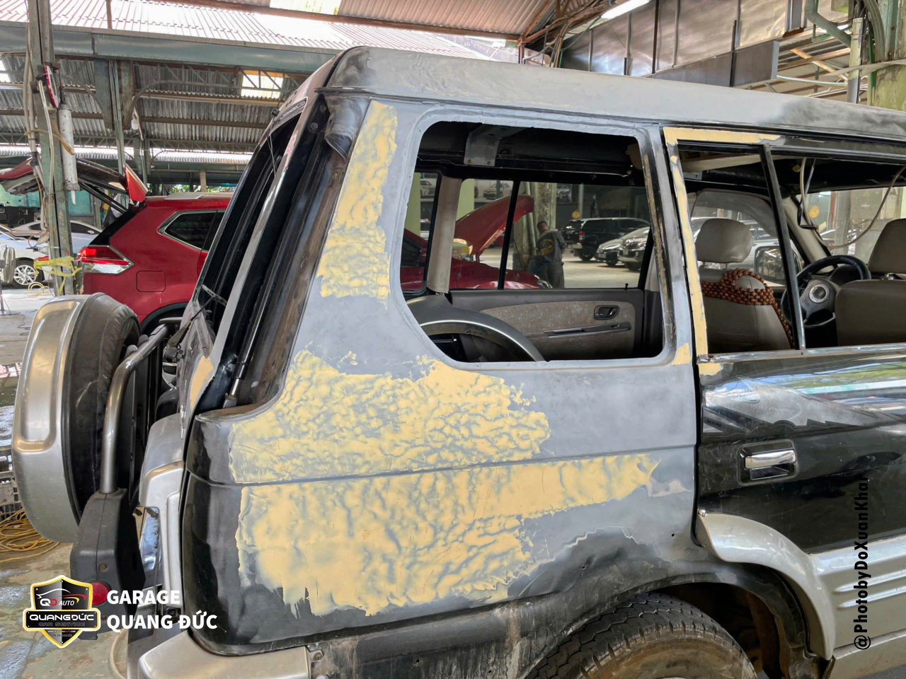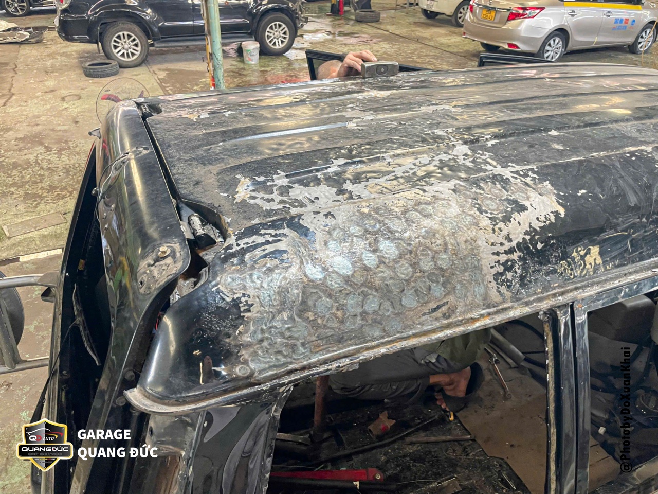 Chủ yếu hạng mục thi công trên chiếc xe này là Phần thân vỏ, nóc, cột, cửa, cốp được phục hồi và phun sơn lại. Đảm bảo rằng không có vấn đề gì khác về thân vỏ sau khi phục hồi, tất cả vật tư phụ tùng, kỹ thuật sơn đều được bảo hành cam kết bằng văn bản.
