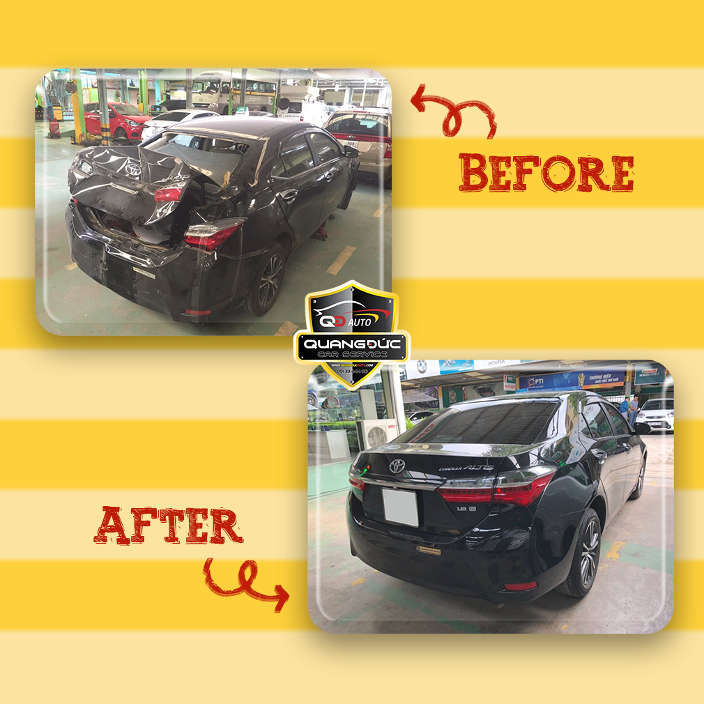 Sau khi kiểm tra tổng thể các phần: phần cứng, phần mềm, khung gầm máy, hệ thống phanh, chiếc Toyota Corolla Altis đã được tiến hành phục hồi toàn diện theo đúng quy trình chuẩn tại Quang Đức Auto: