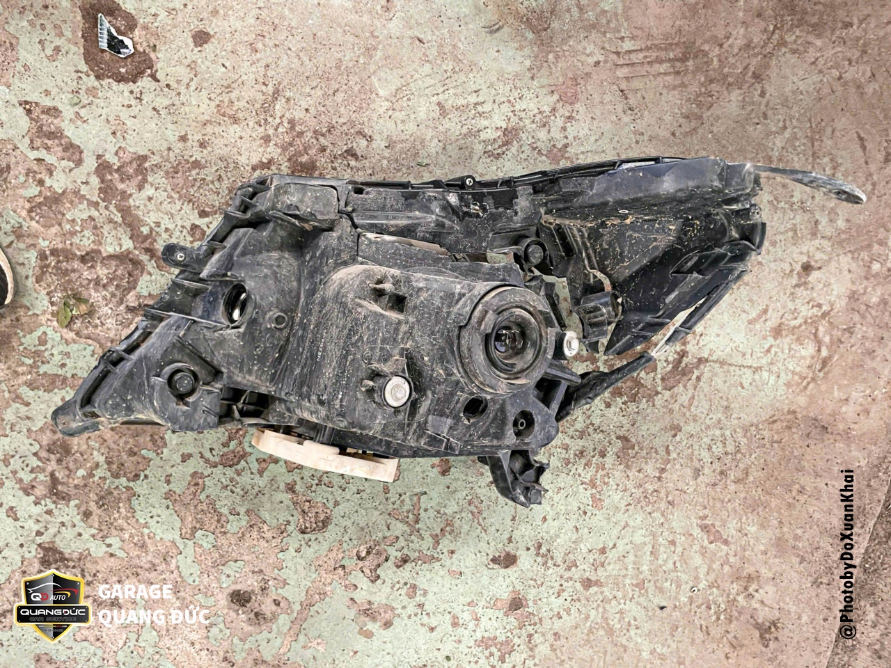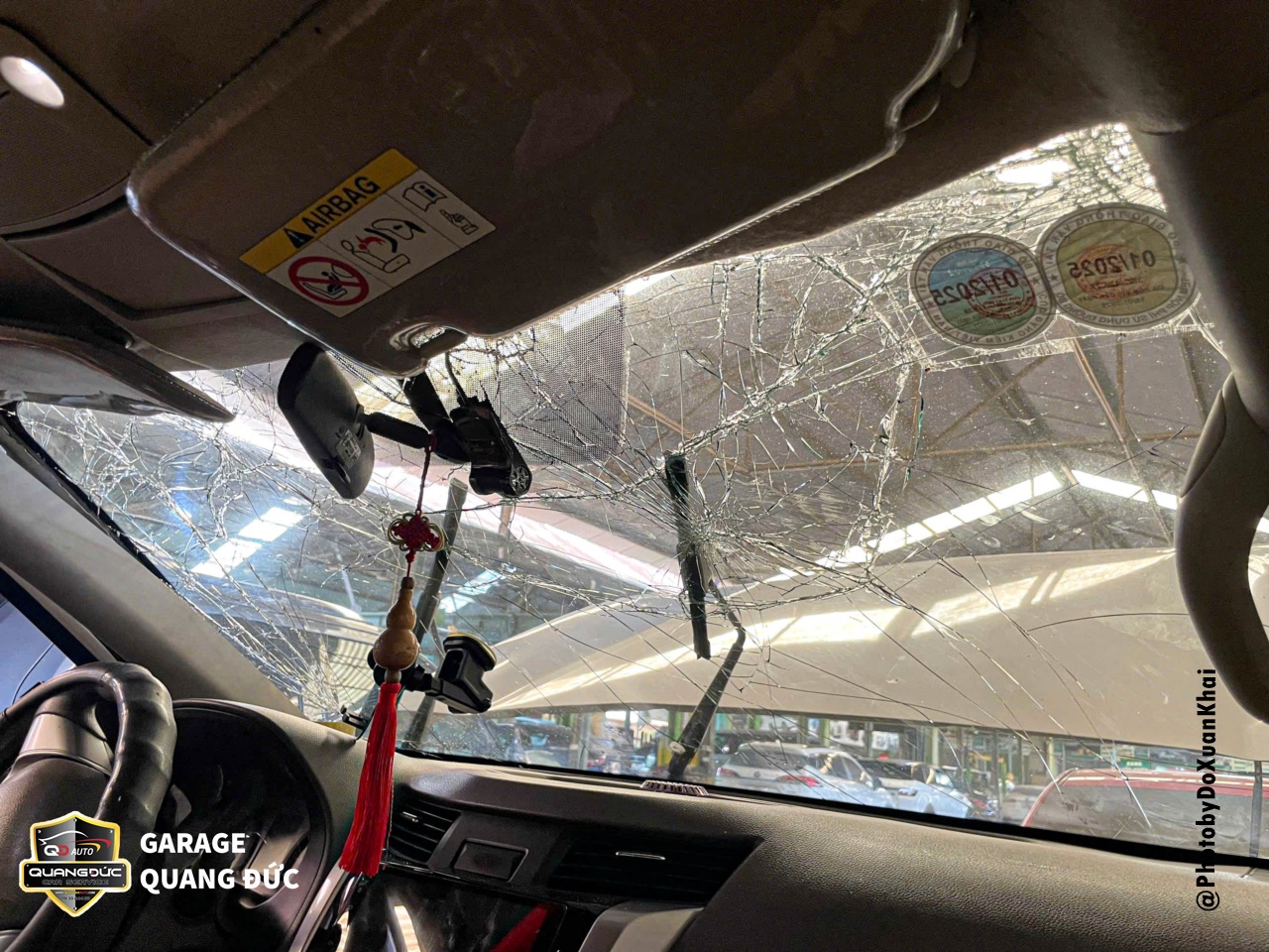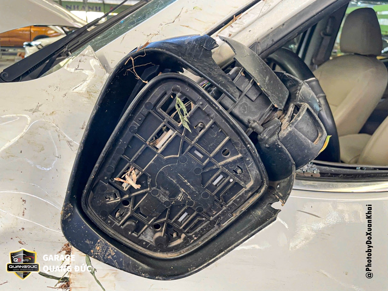 Chiếc xe được xác định hư hỏng nặng tại các vị trí đầu xe, quanh sườn xe đều có vết móp, đặc biệt chiếc xe này còn bị lật bởi vậy nên phần nóc cũng móp khá nặng, các trụ cột đều móp, biến dạng.